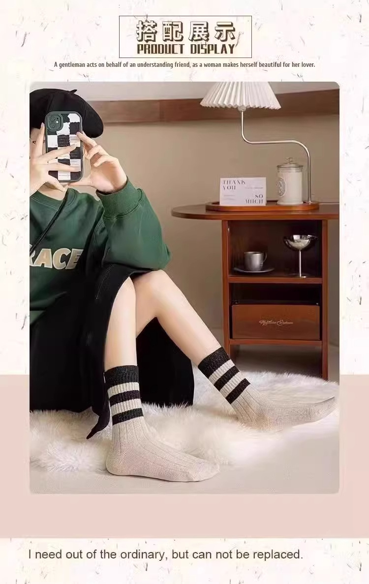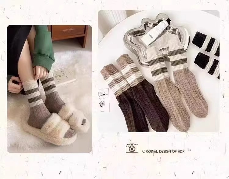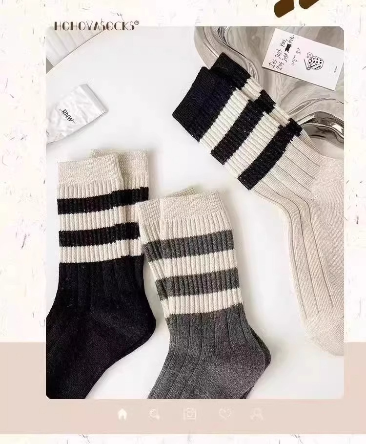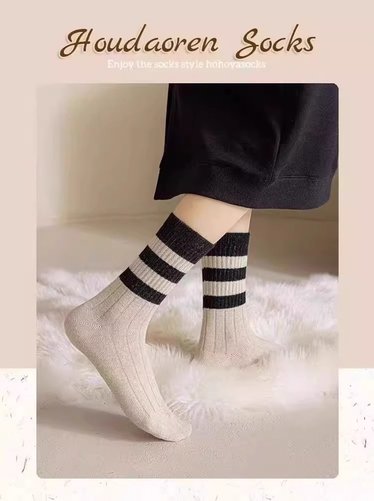【应季速抢❗️19.9抢10双🔥秋冬中筒袜】轻柔软糯,告别寒冷,袜子女中筒秋冬款防臭吸汗鲨鱼裤百搭条纹堆堆长筒袜学院风防滑