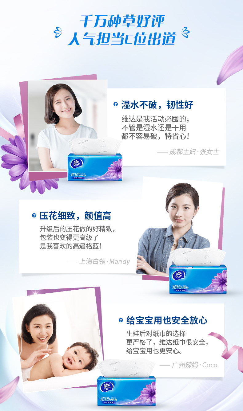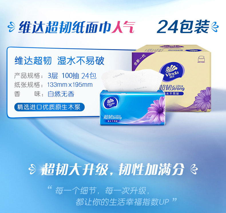 维达超韧抽取面巾3层S码100抽×24包/箱
