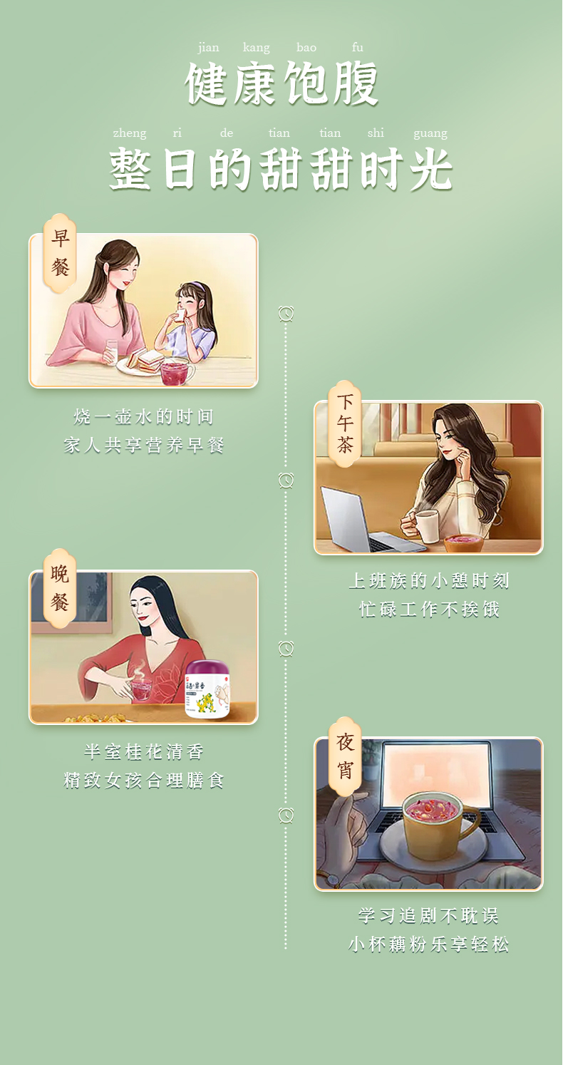 【食用方法】取3-5勺左右粉粉倒入杯中(约40g),加入少量冷开水(约10ml)搅拌均匀,再加入开水95°以上边冲边搅拌,直至透明状即可