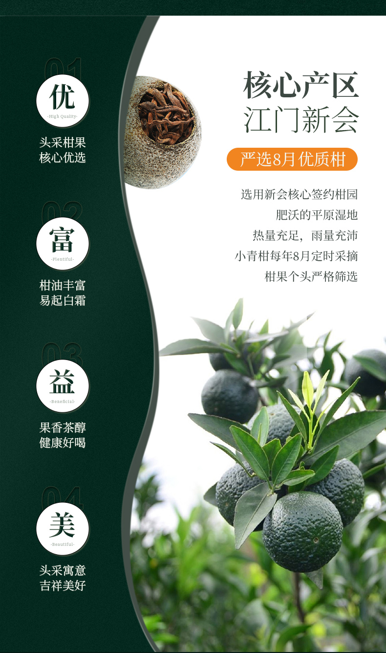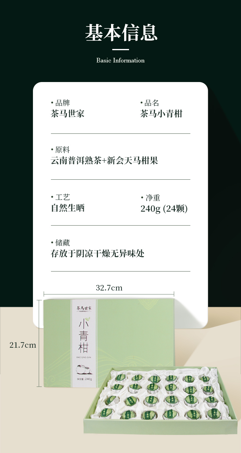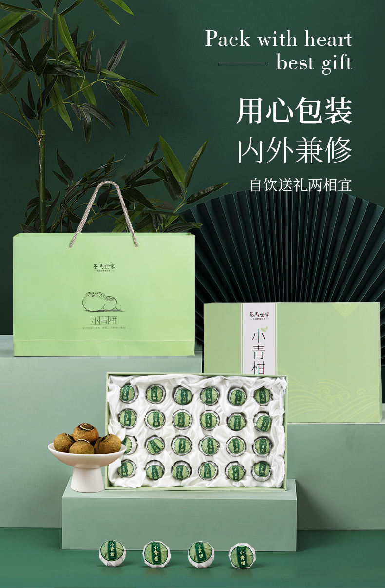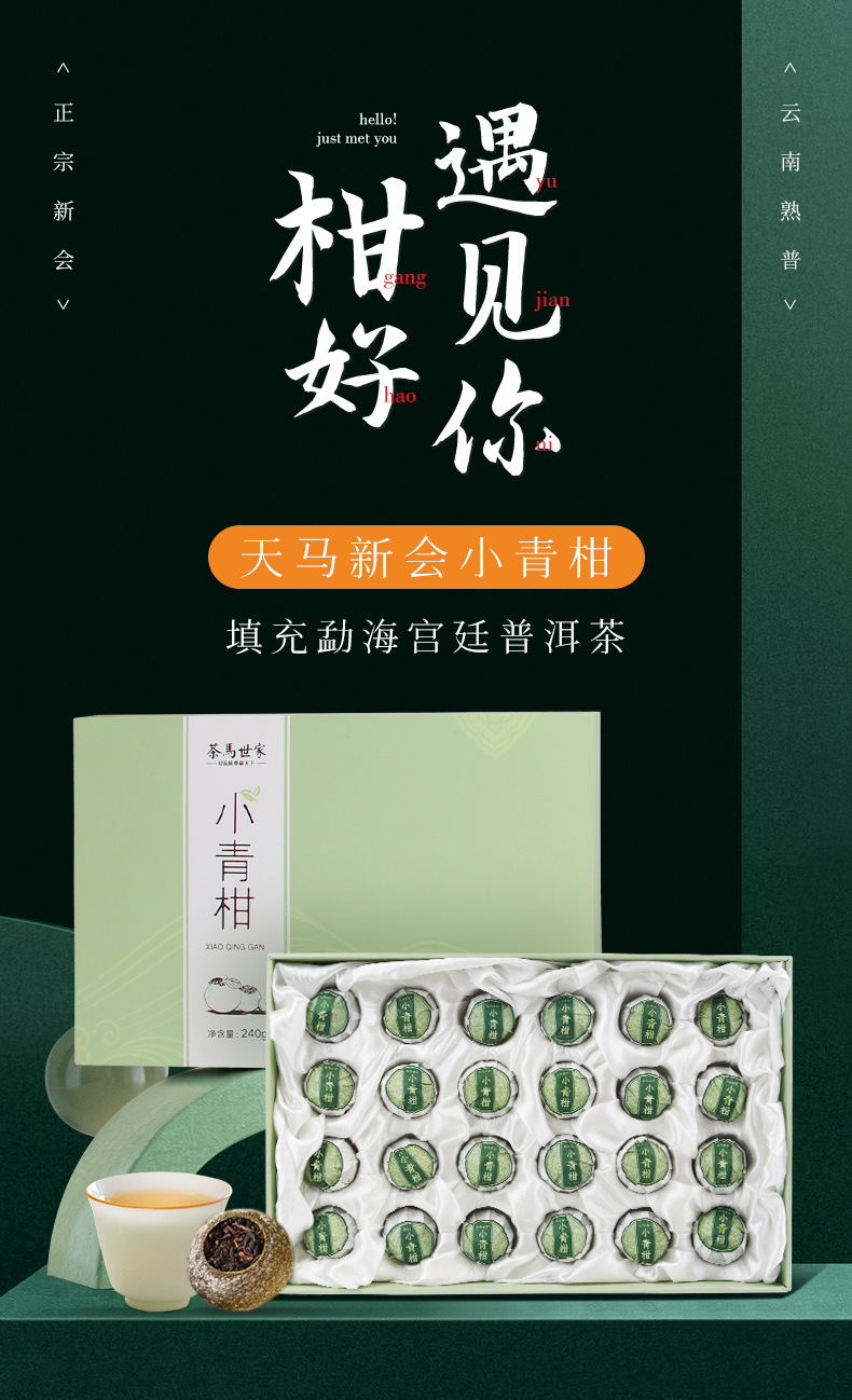 【金奖高颜值】茶马世家 正宗新会小青柑 陈皮 普洱 茶叶柑普熟24粒 绿色礼盒装