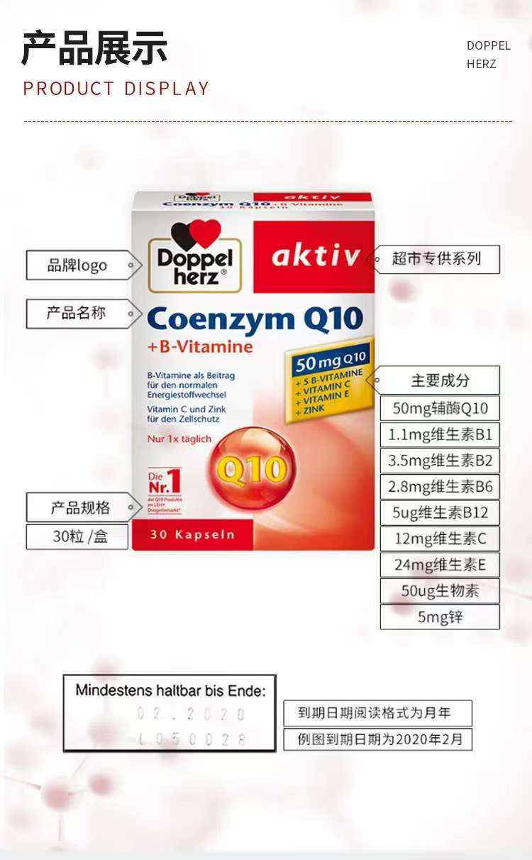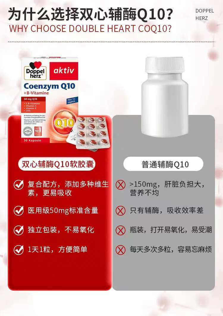 【保税区包邮直发】德国 Doppelherz 双心 辅酶Q10胶囊30粒2盒装 26.08(新老包装随机发)