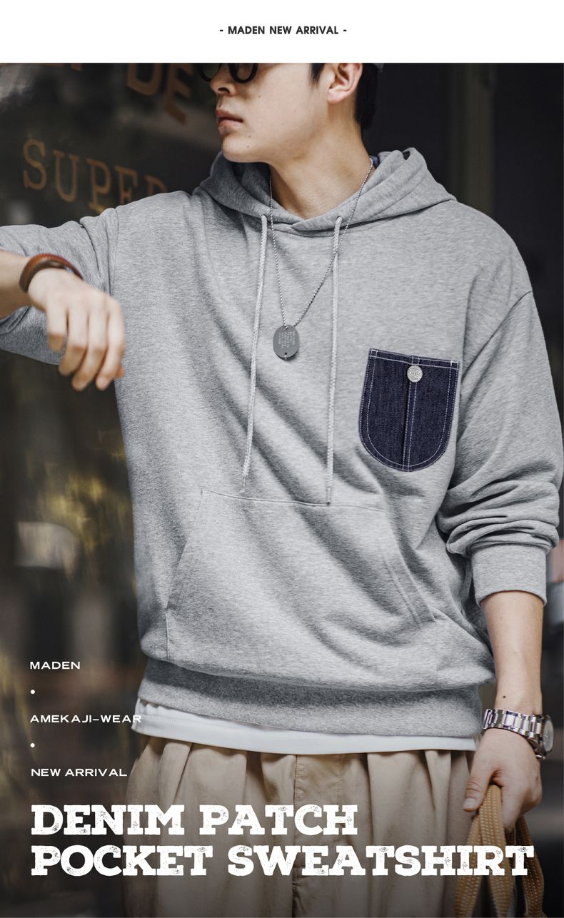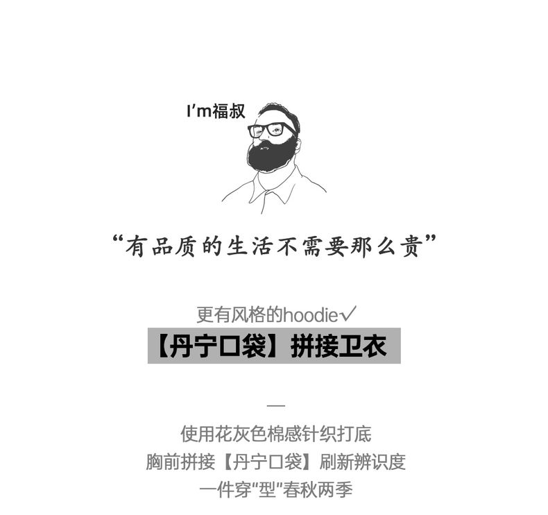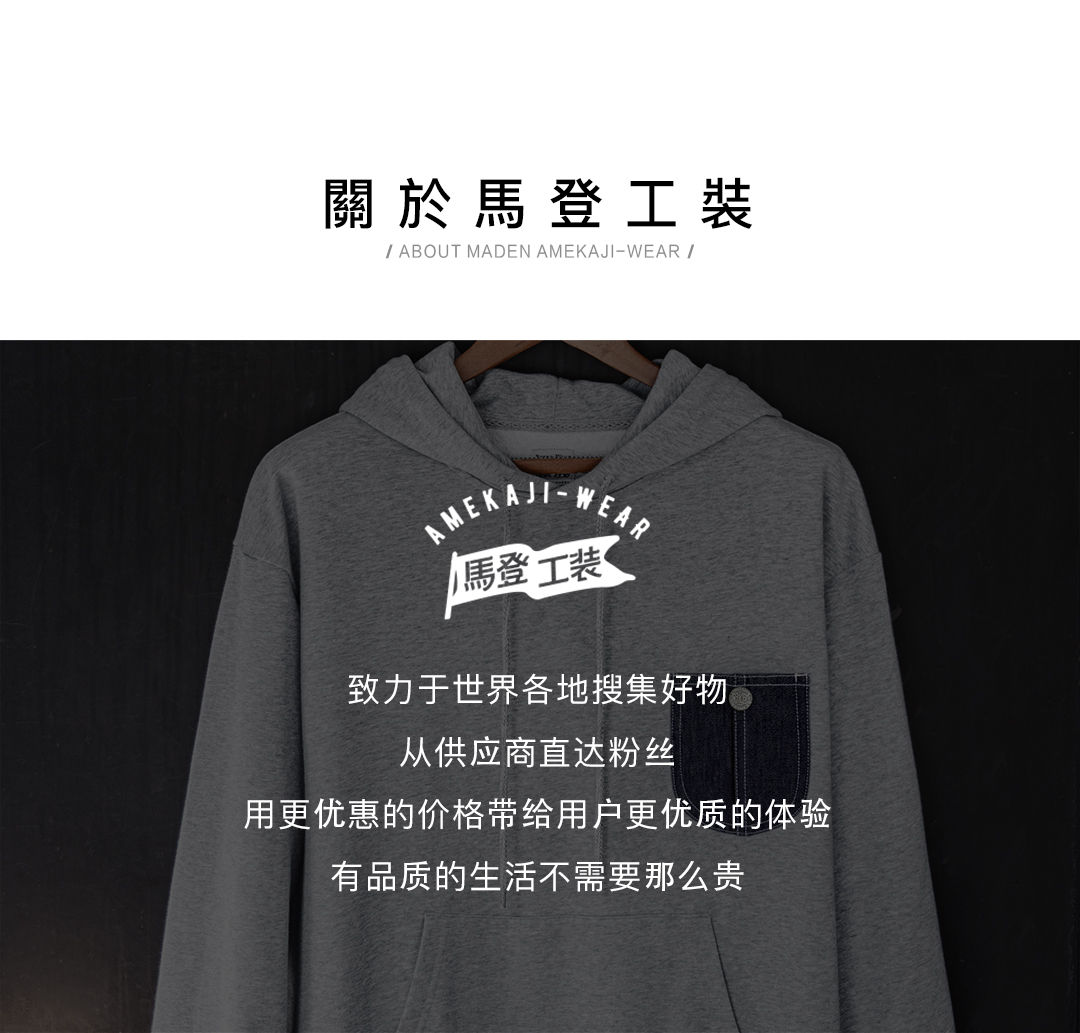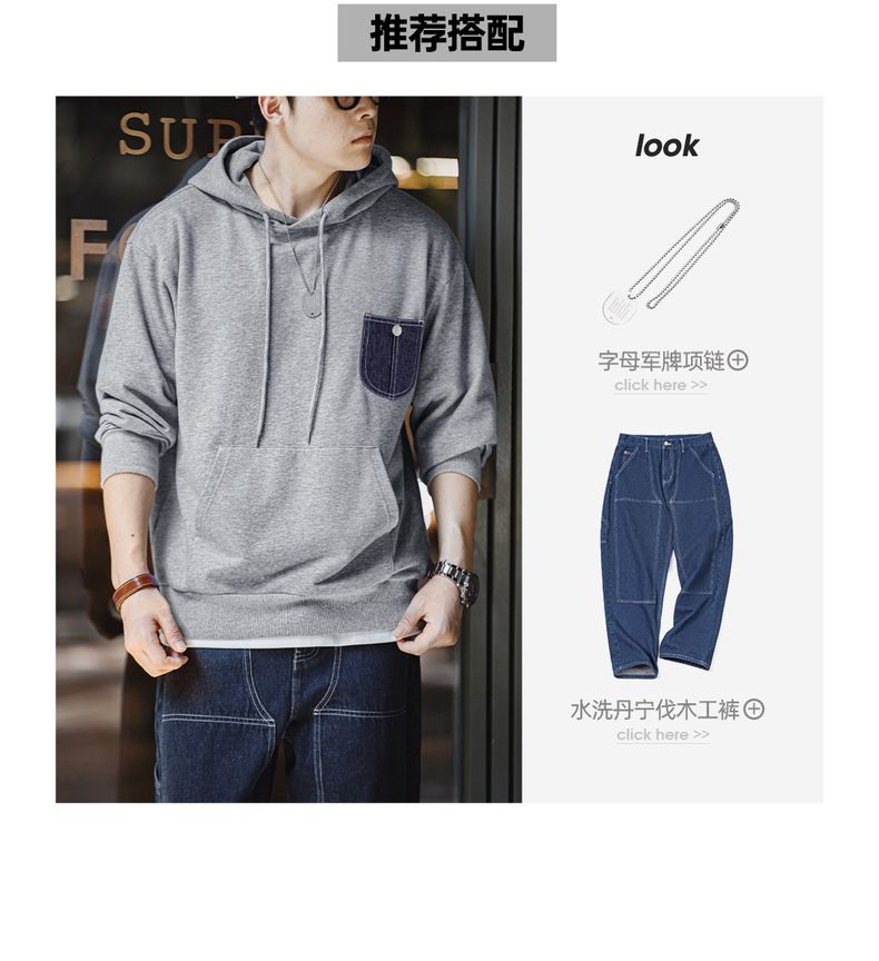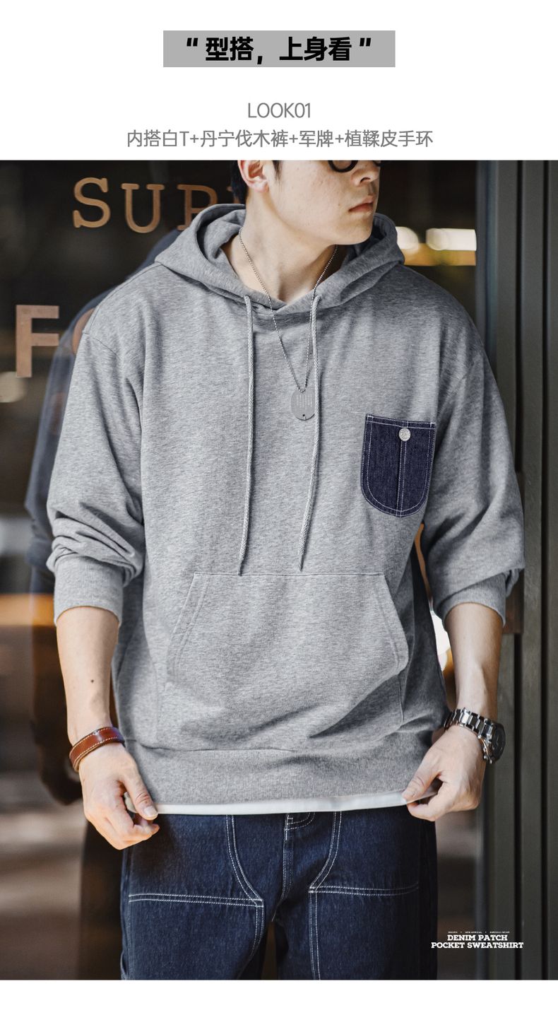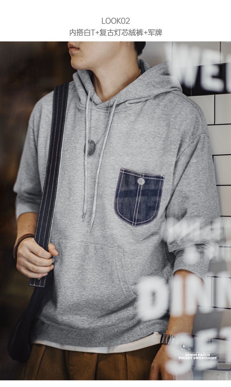 工装优选美式休闲口袋拼接连帽卫衣cleanfit运动长袖上衣男秋冬季