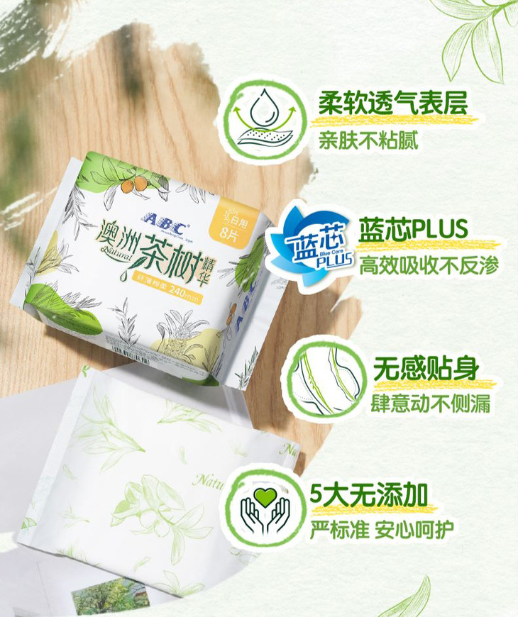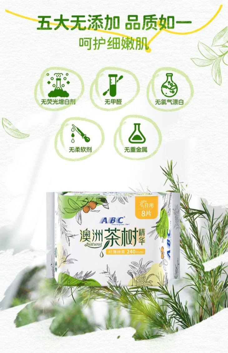 ABC澳洲茶树卫生巾夜用280mm棉柔超薄姨妈巾8片/包