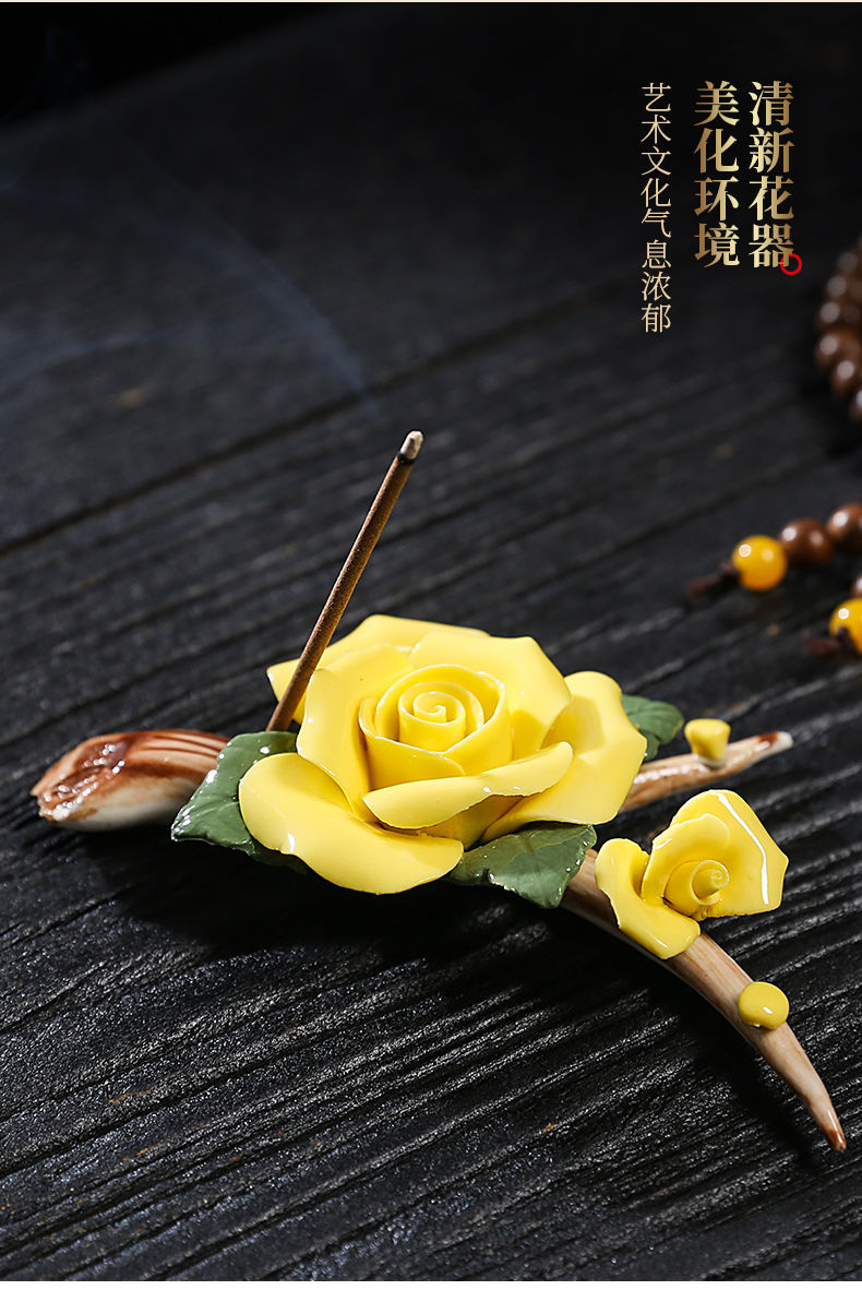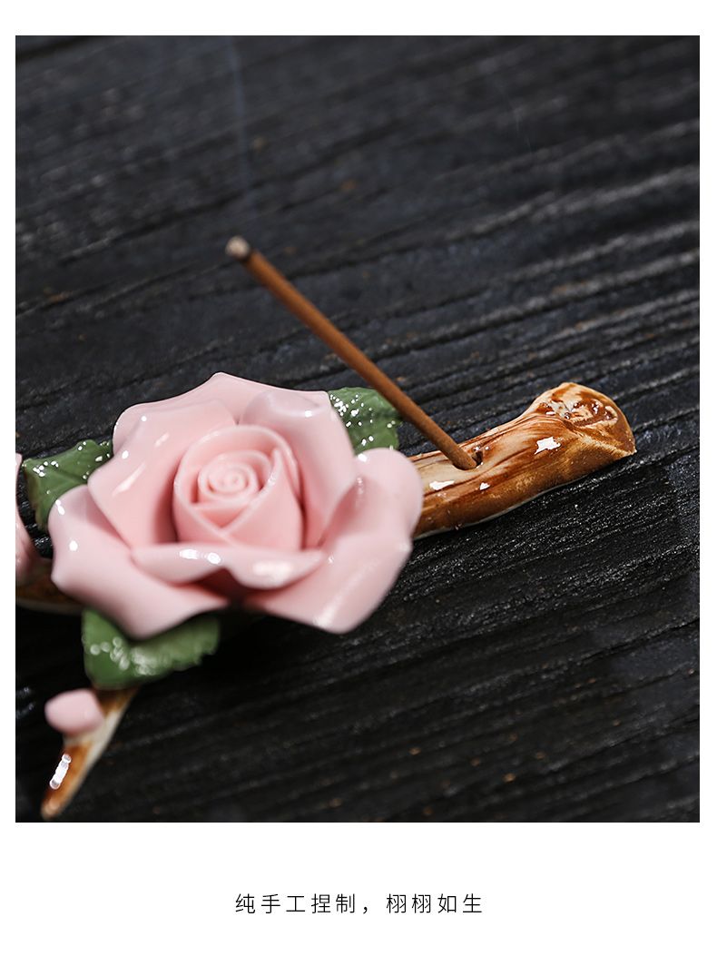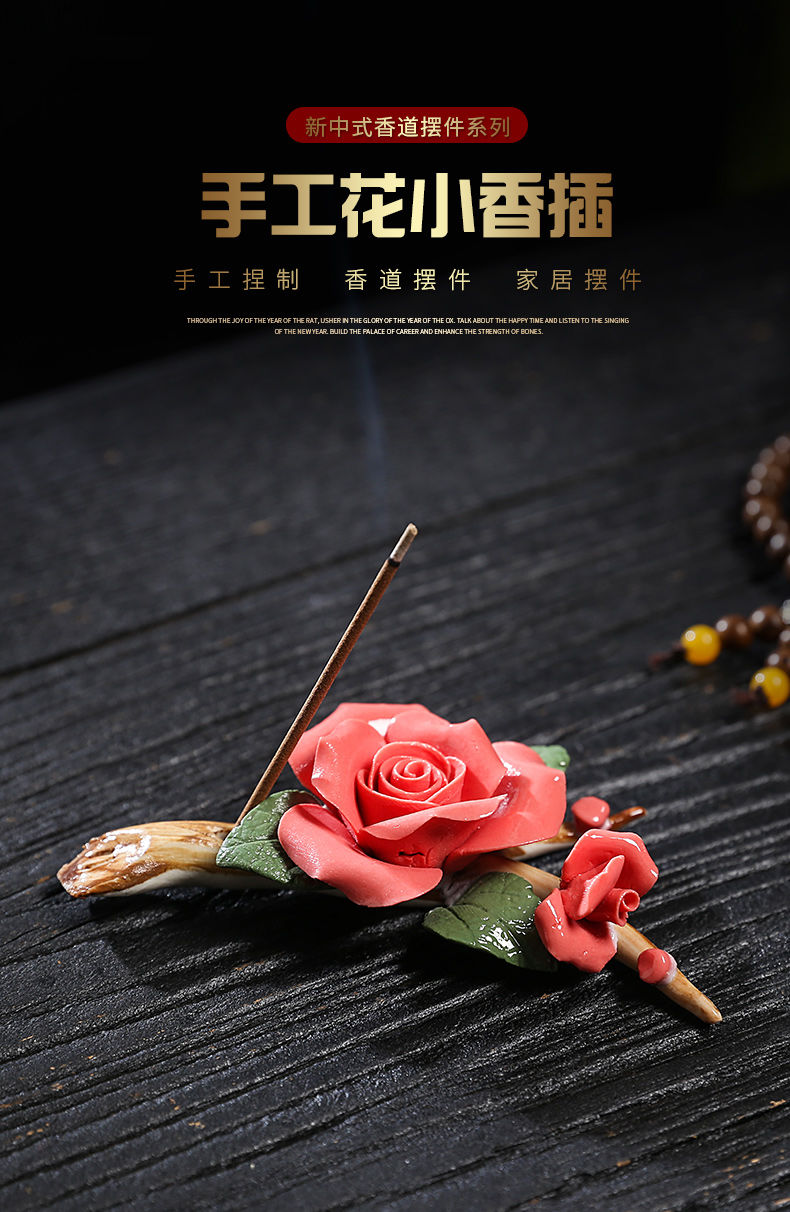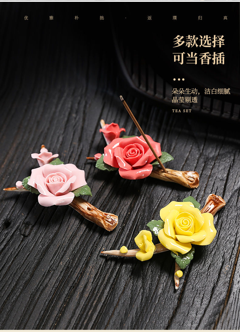 陶瓷玫瑰牡丹荷花香插小茶宠家用客厅香薰线香茶室摆件莲花