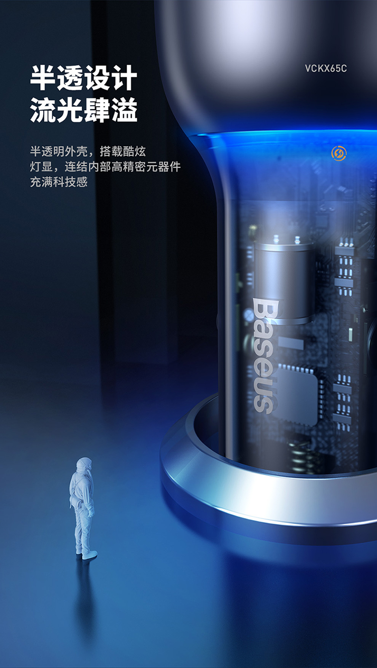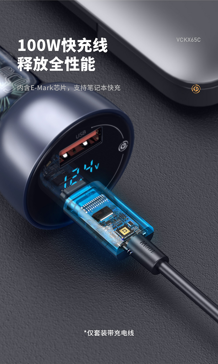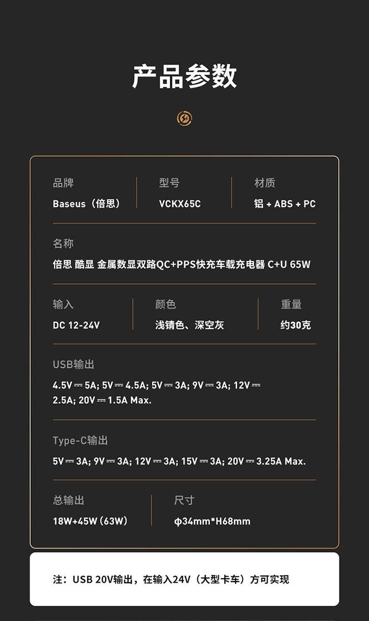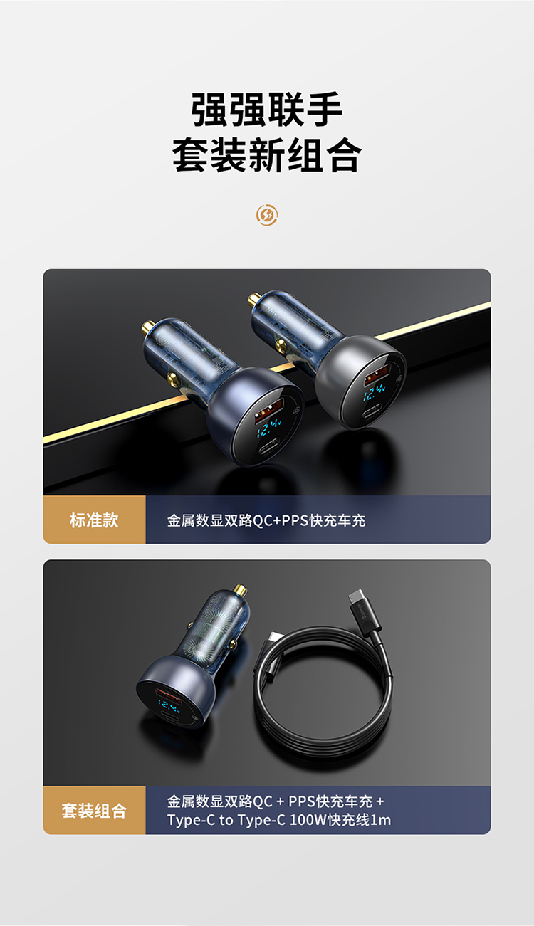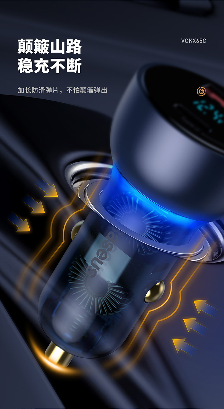 倍思 酷显 金属数显双路QC+PPS快充车载充电器 C+U 65W