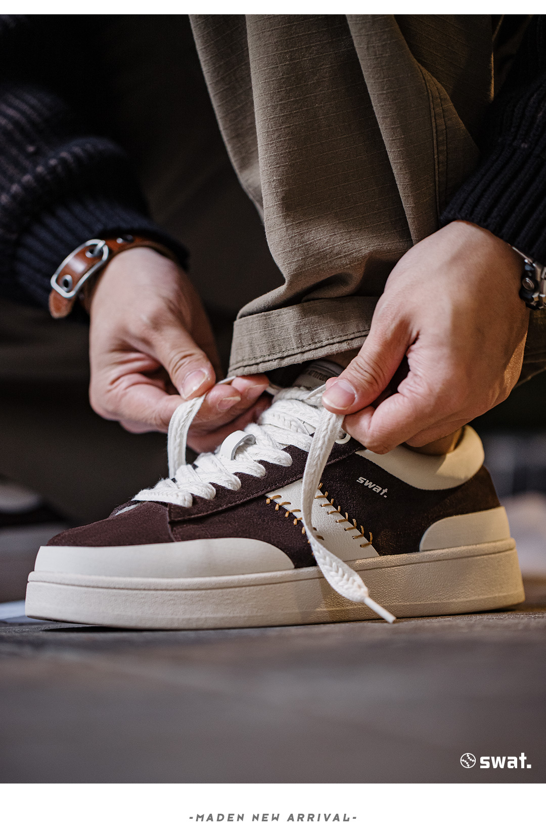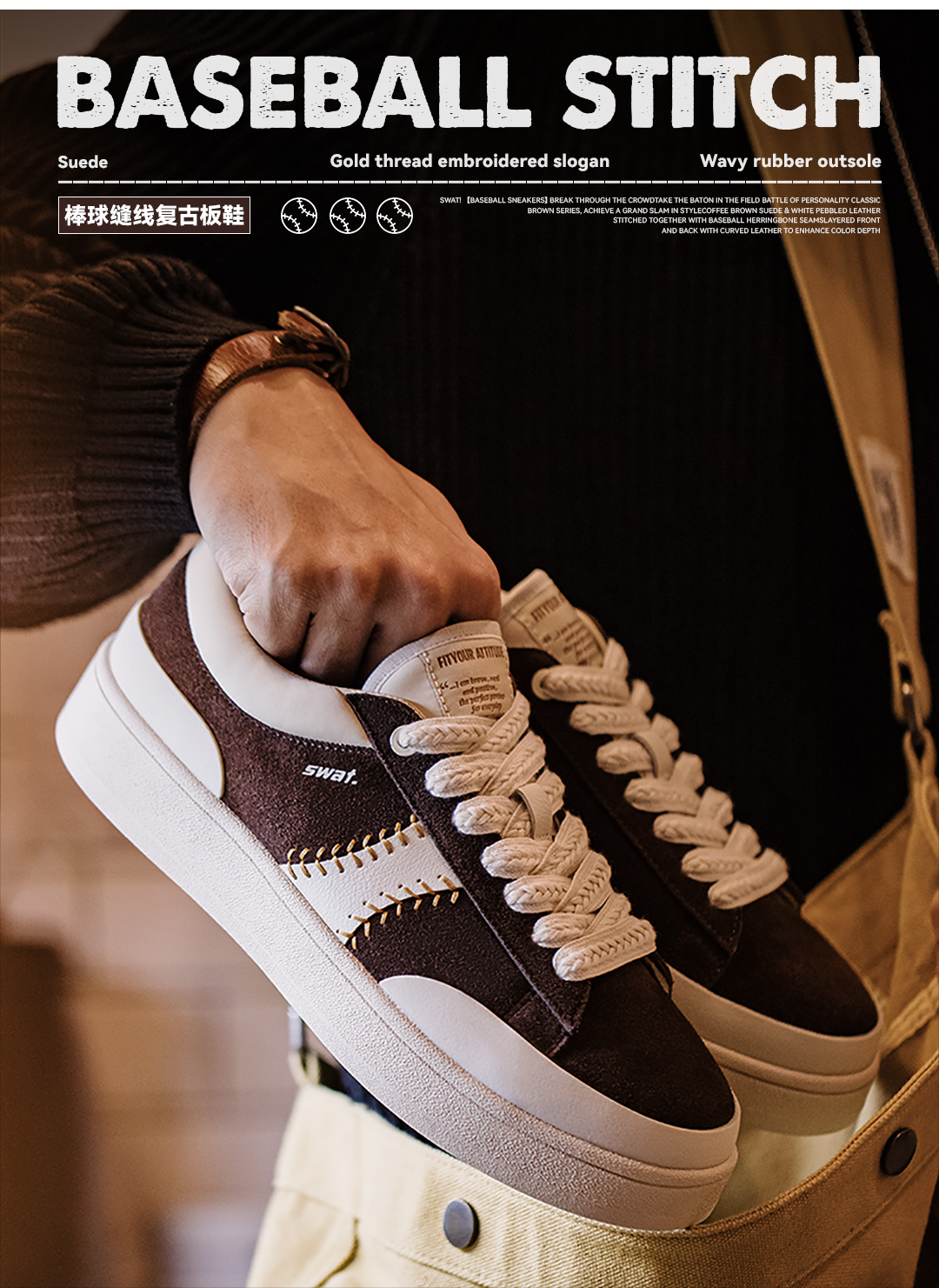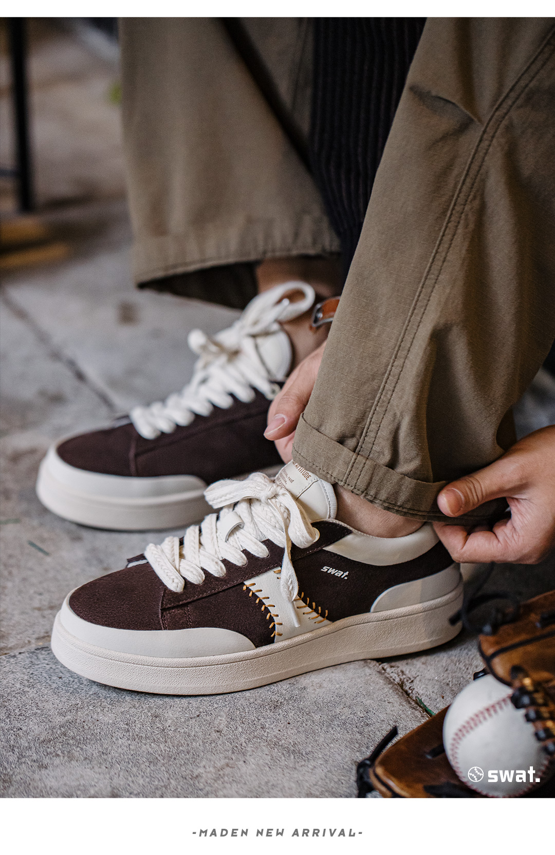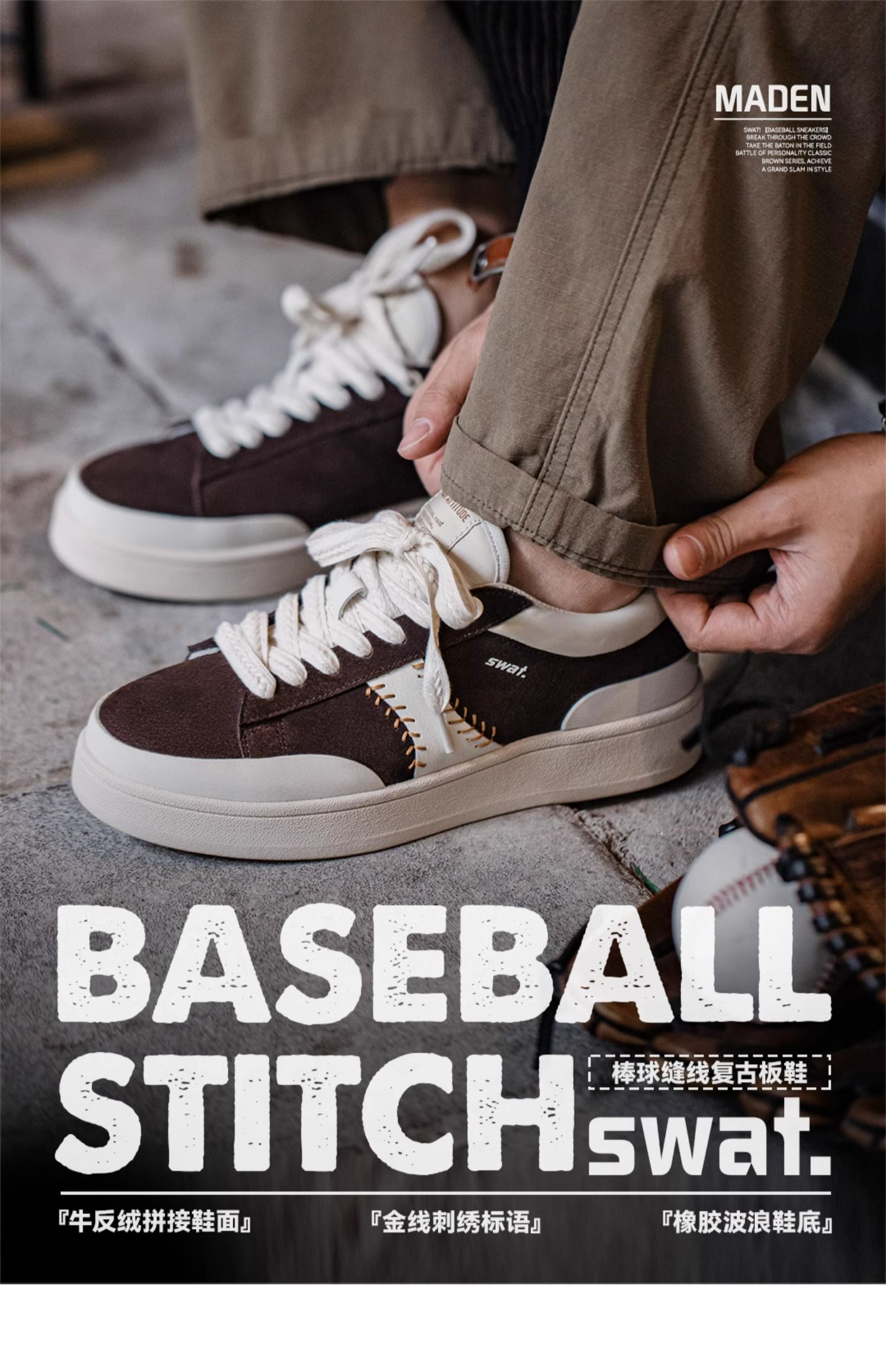 马登秋冬新款棒球设计男鞋平底休闲鞋厚底增高潮流复古百搭板鞋