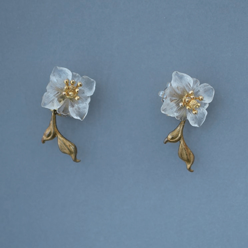 北京仓|Monshiro-sasayuri-水晶 笹百合 耳环[日本设计师]