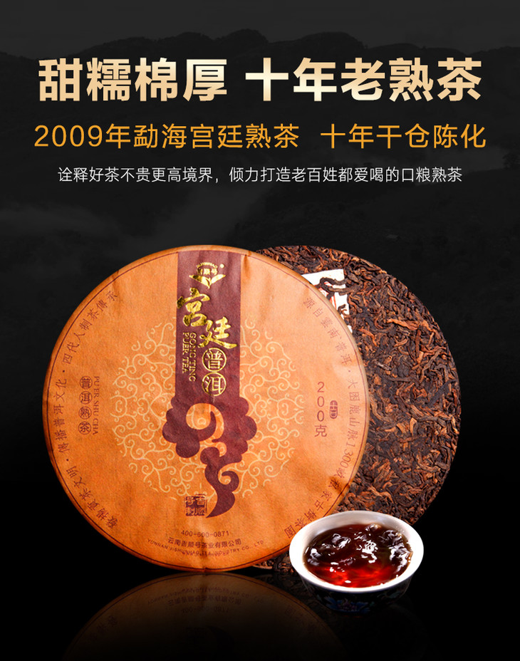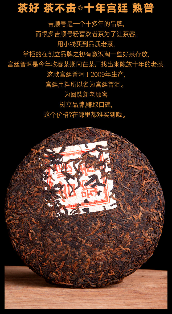 吉顺号2009年宫廷普洱熟茶 十年陈金芽普洱熟茶200g