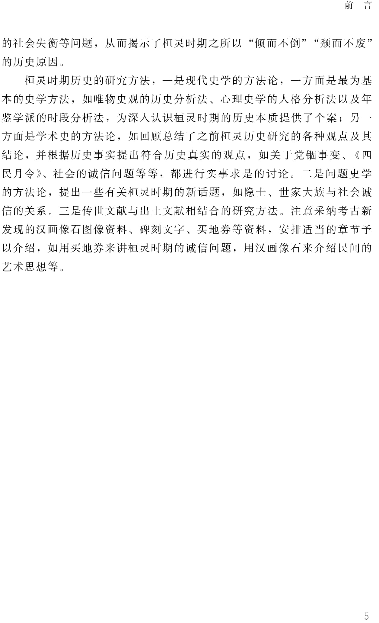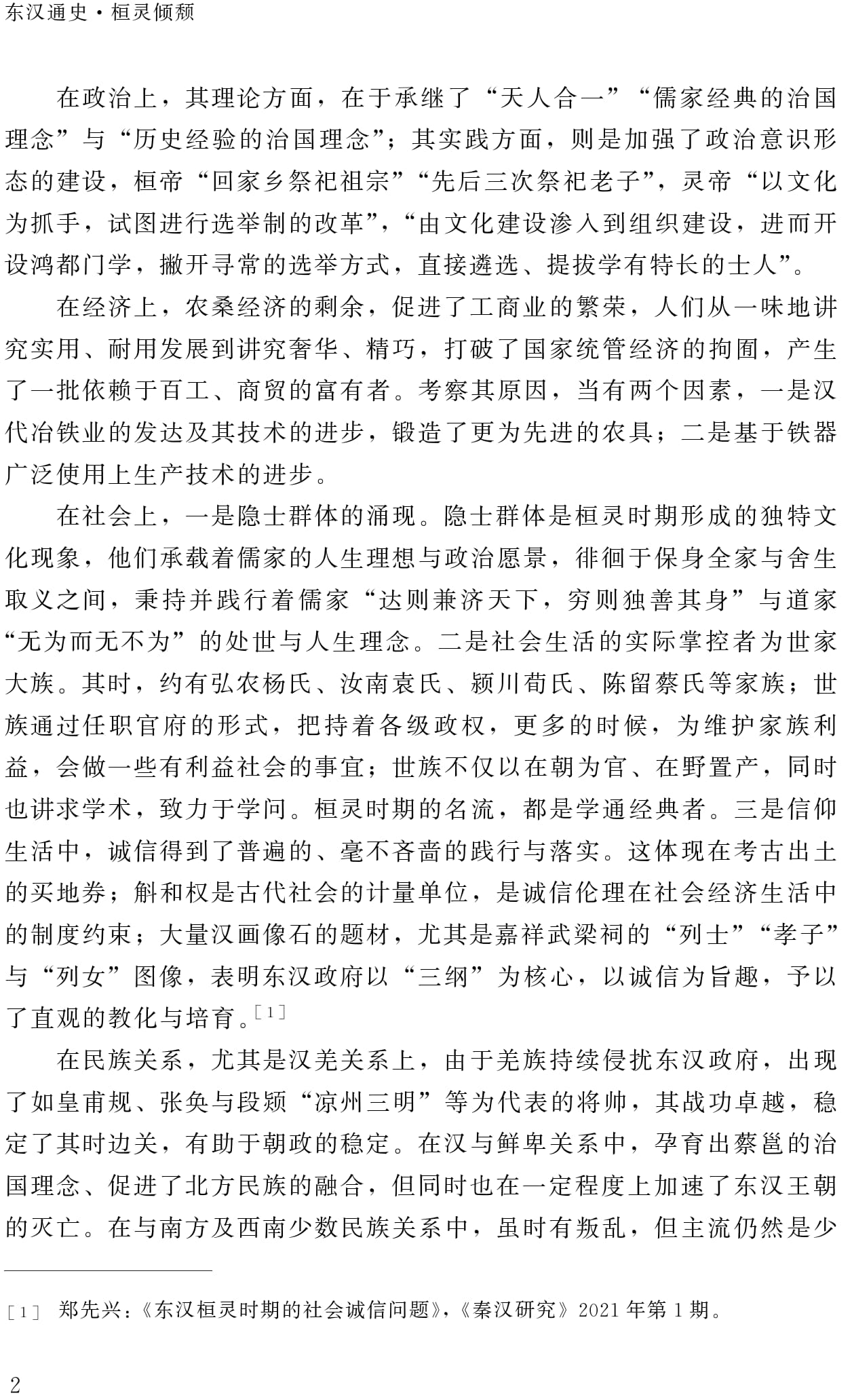 第三章 桓灵时期的社会 第一节 隐士 一、隐士状况 二、隐士类型 三、隐士生活 四、隐士贡献 第二节 世族 一、世族官僚贵族 二、世族间的互助性 三、世族的社会公益性 四、世族的文化传承性 五、世族生活的图景 第三节 社会诚信 一、诚信认知 二、诚信的缺失与落实 三、诚信的制度约束及其精神培育 第四节 农民起义 一、农民起义及其原因 二、黄巾军起义
