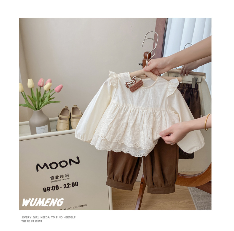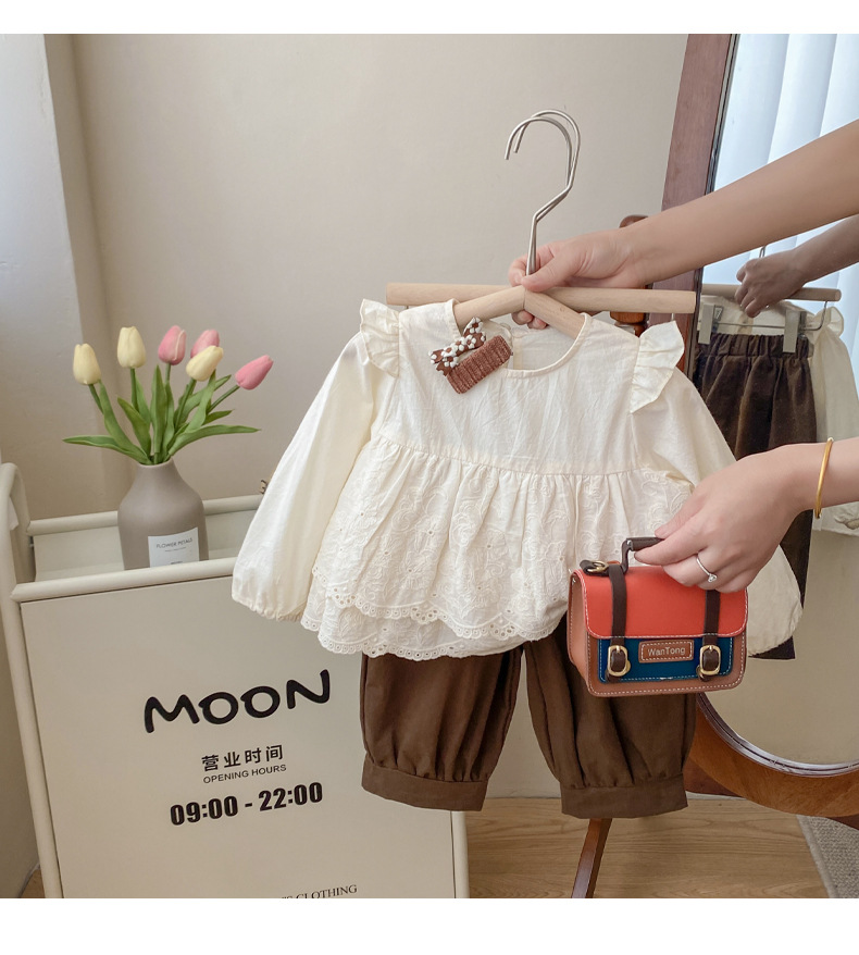 【棉布刺绣长袖套装】女童春季套装2024新款儿童洋气时髦韩版宝宝春秋装休闲裤子两件套