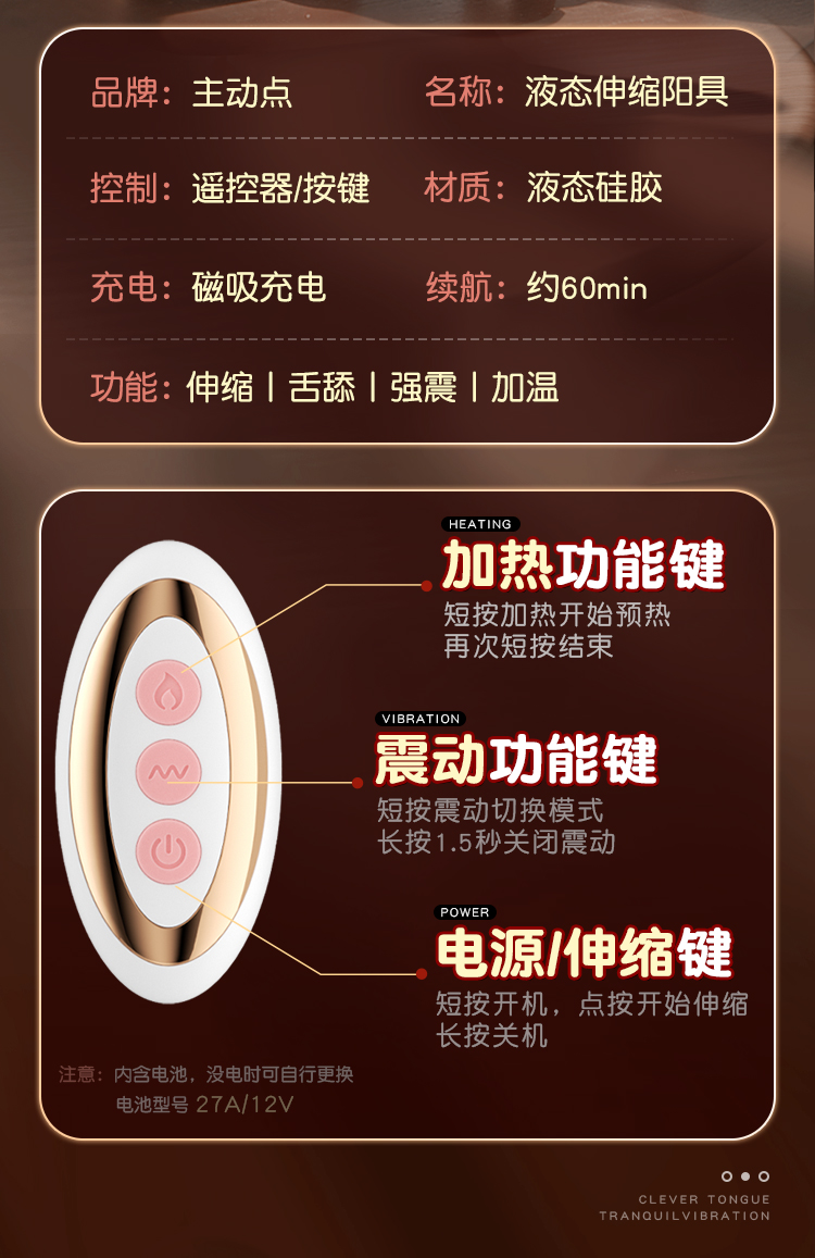 【升级抗菌材质】主动点液态硅胶舌舔伸缩加温强震无线遥控假阳具