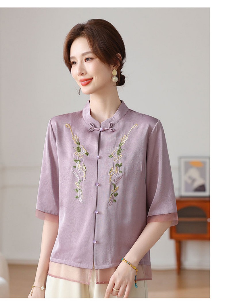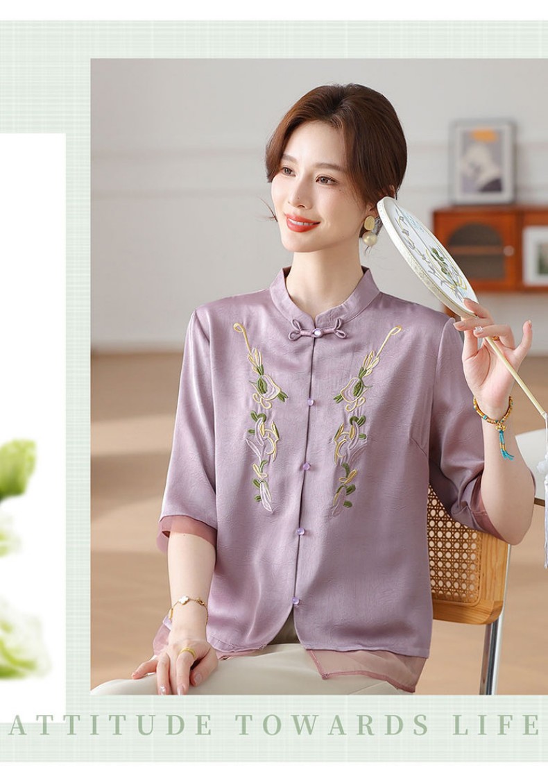 对音夏款时尚大码妈妈装立领盘扣刺绣衫新中式上衣JK-N2550 商品图0