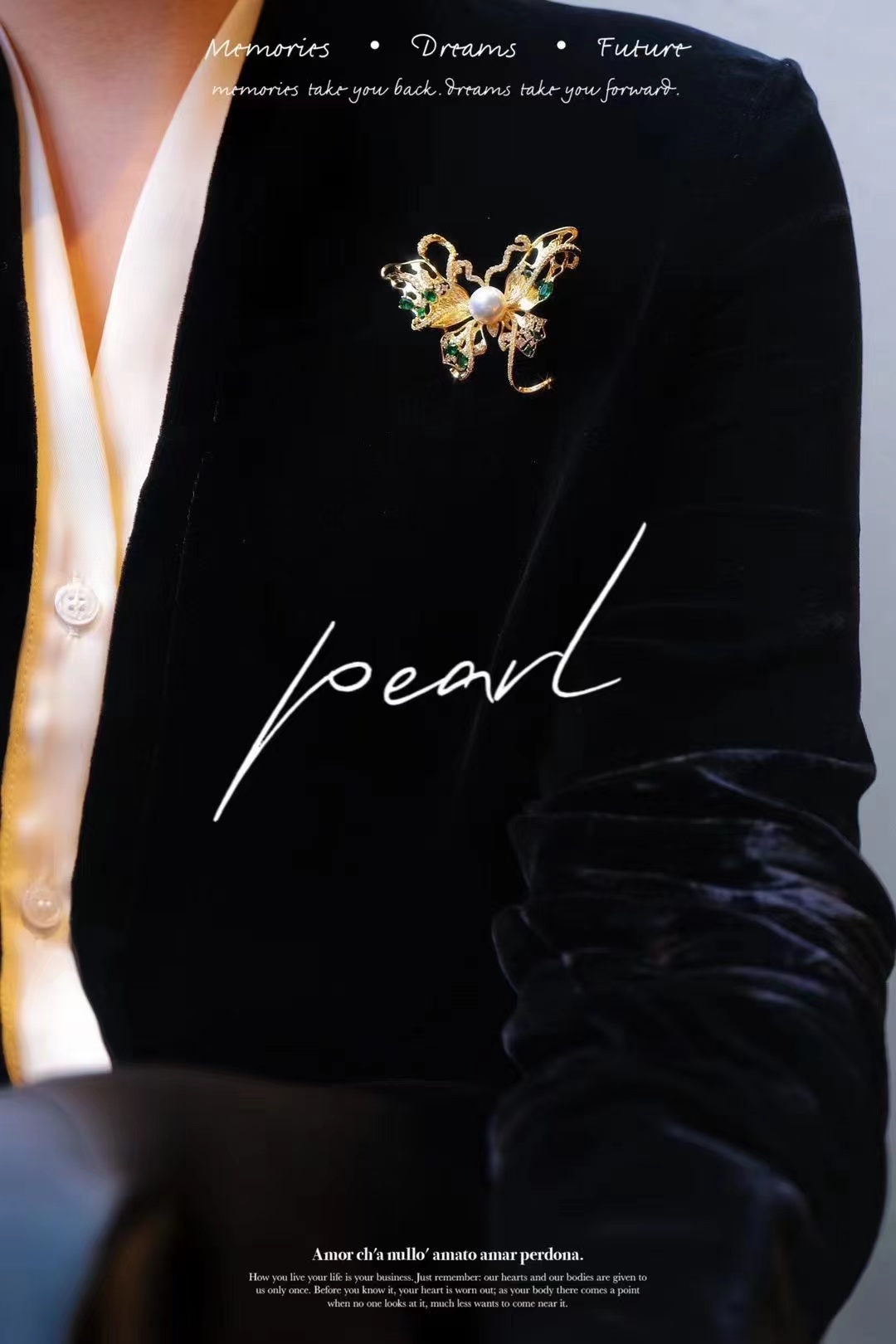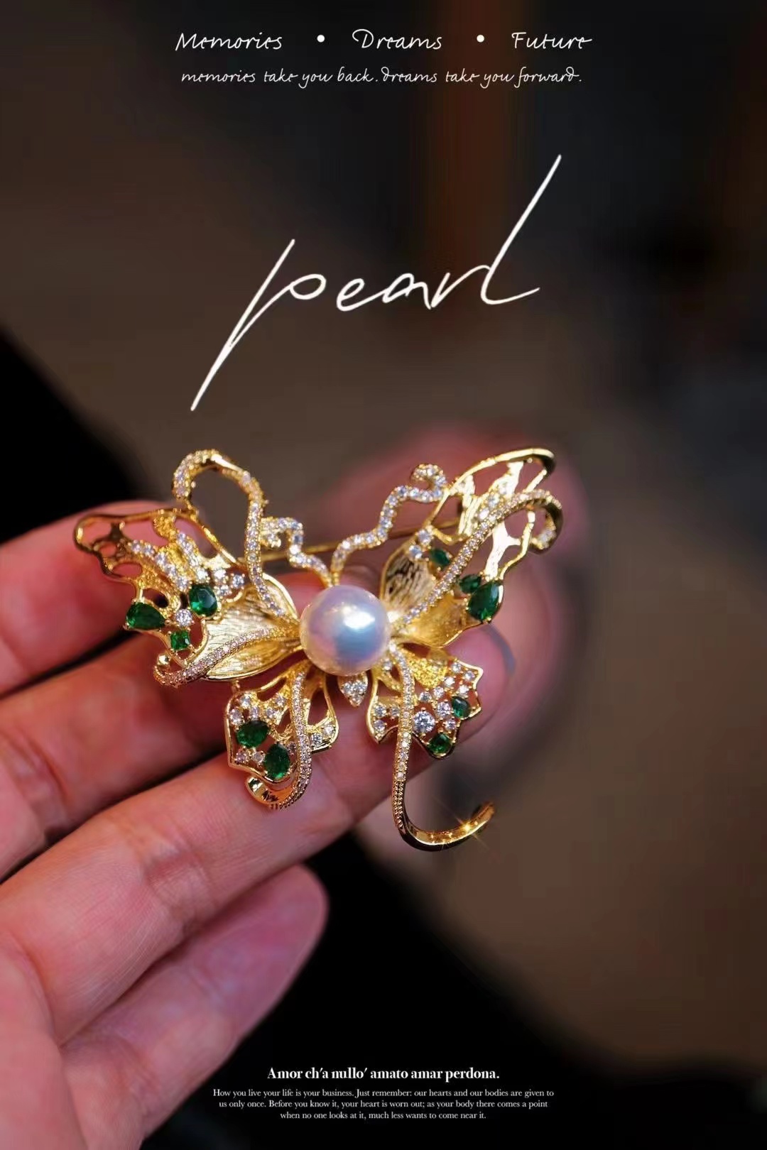 【国庆好物】CR 蝴蝶胸针 天然爱迪生珍珠10-11mm