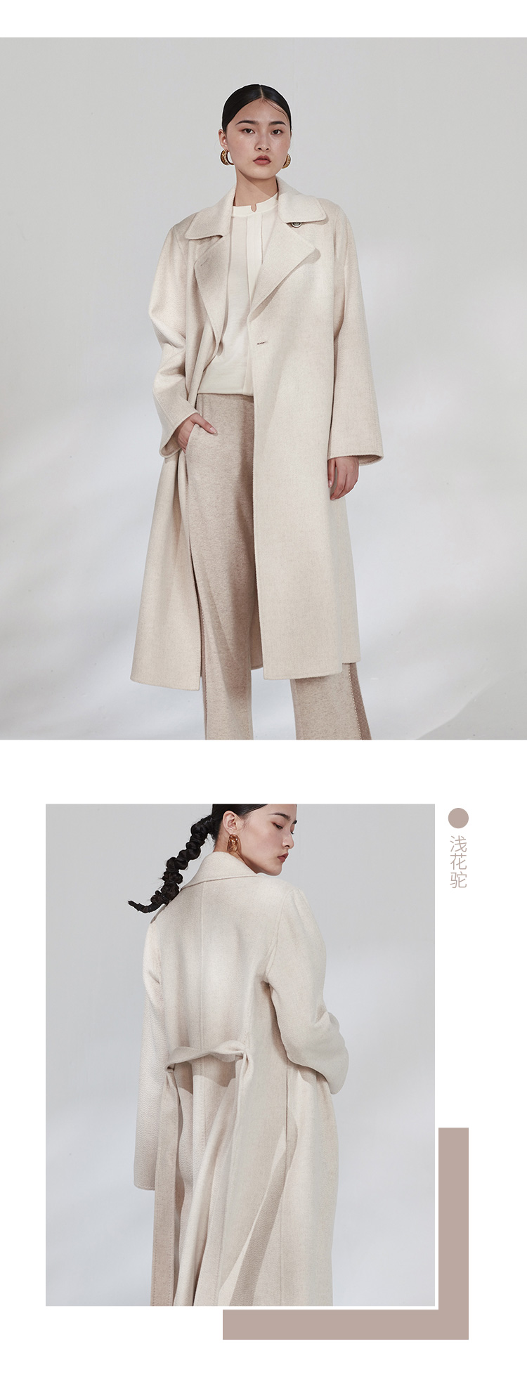 秋冬 水波纹女装侧开叉羊绒呢大衣 SJF16W503B