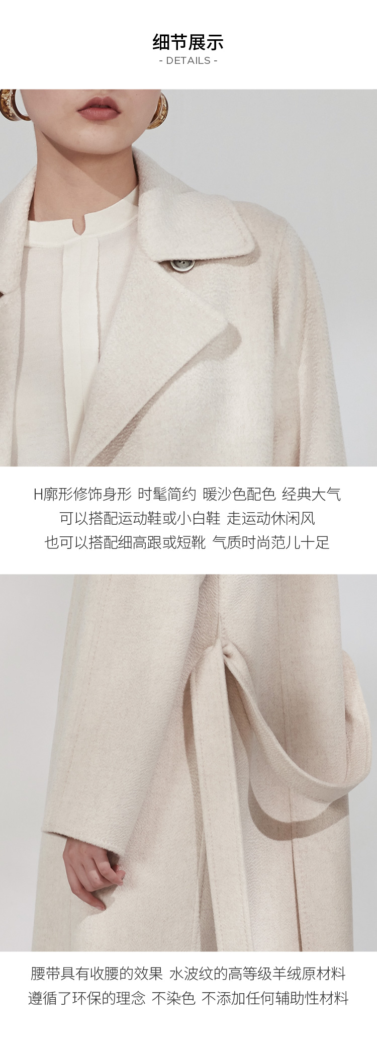 秋冬女装长款直筒水波纹环保羊绒呢大衣 SJF18W785B