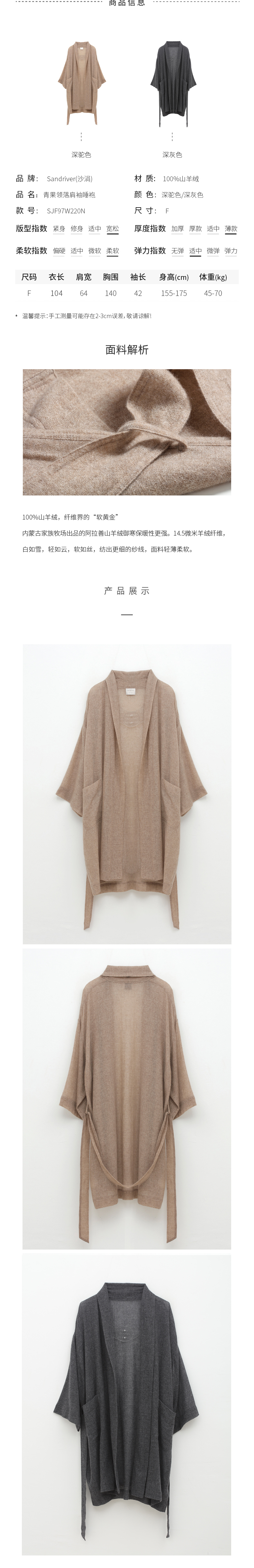 历年在巴黎时装周亮相,享誉世界的艺术羊绒品牌[Sandriver 沙涓]由羊绒布道者郭秀玲女士创立。阿拉善自有牧场纯种羔羊绒,日本国宝设计师小筱顺子,上海自有基地精工细作。承载羊绒情怀,坚持匠人品质。