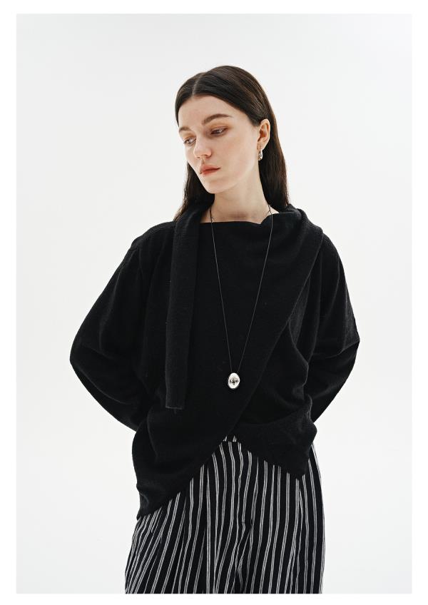 棉仓3571505021-IACHOE【小熊】不对称羊毛针织毛衣