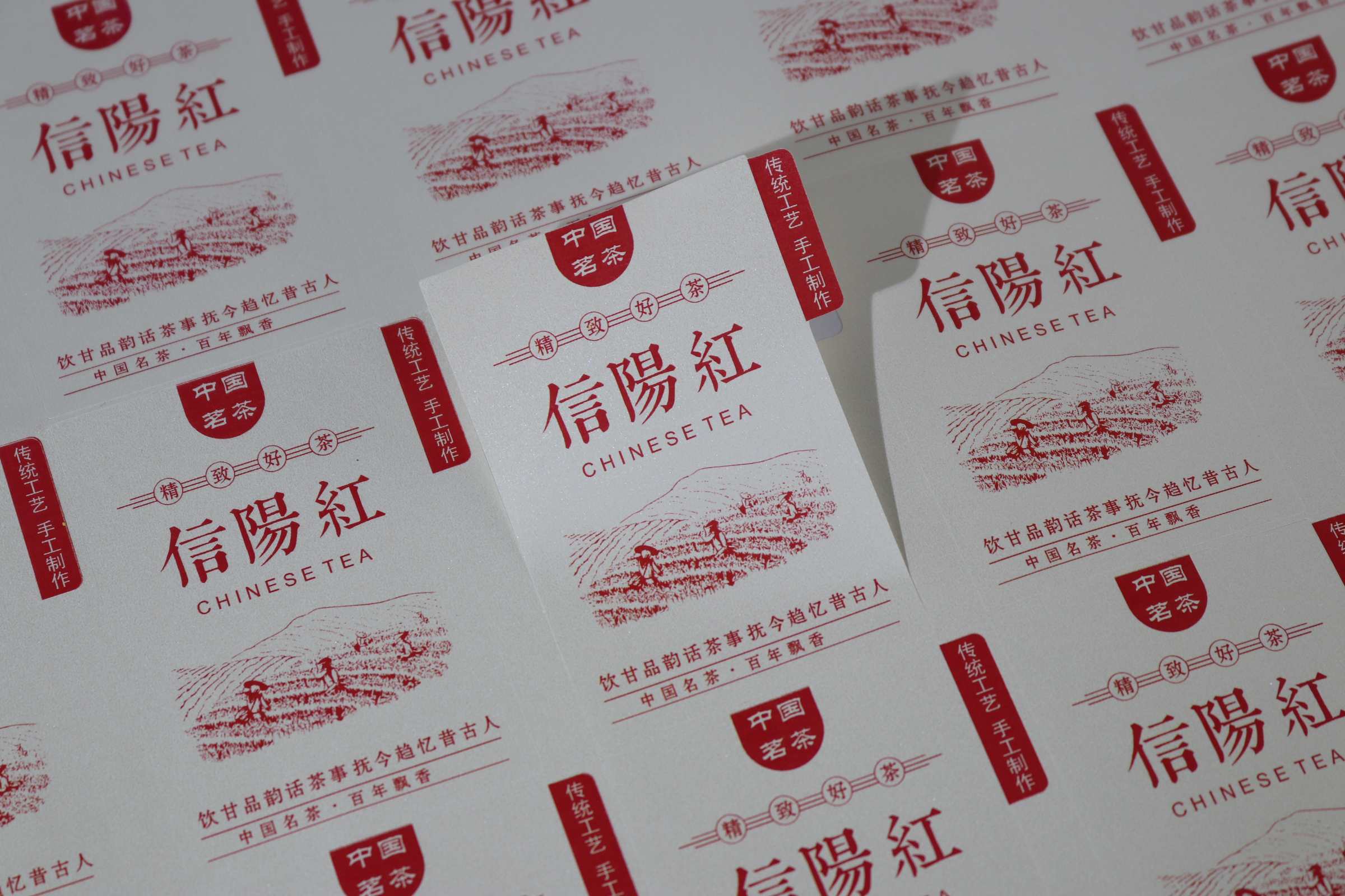 不干胶【信阳红.采茶园 红】6元1张.需购满40张包邮