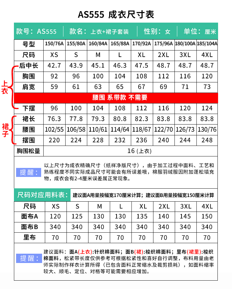 裁缝学苑AS555新款圆领系带上衣松紧腰半身裙套装纸样女装两件套版型