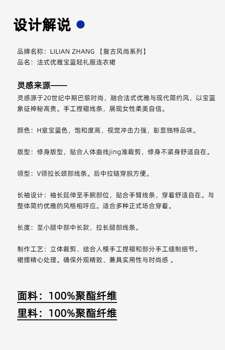 E系列-定制 ——“复古风尚”——法式优雅——宝蓝轻礼服连衣裙 2401173