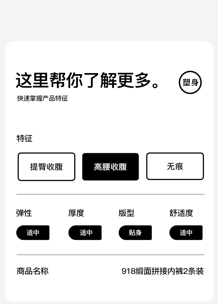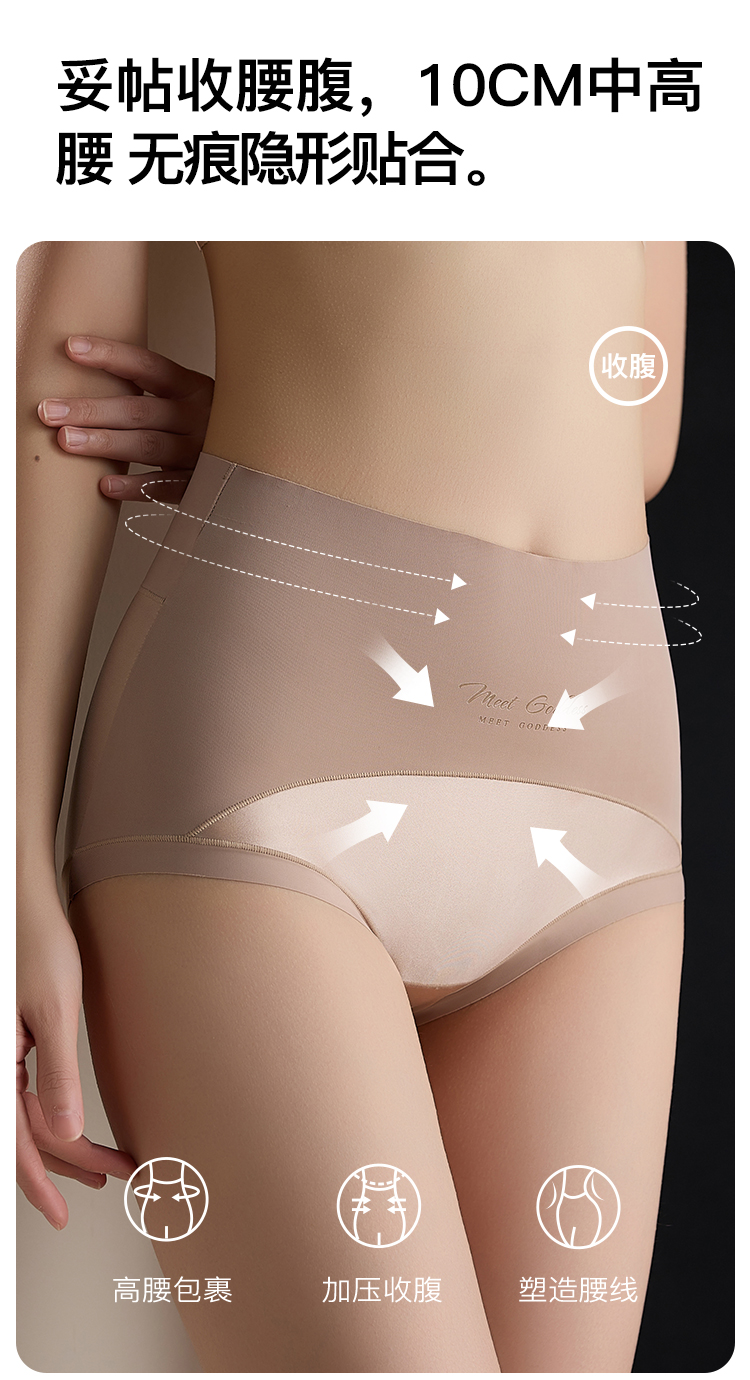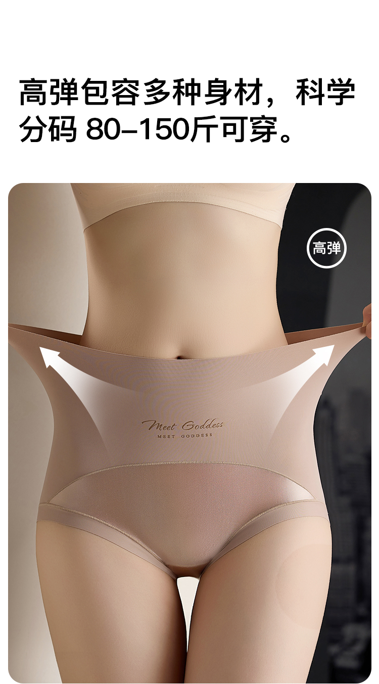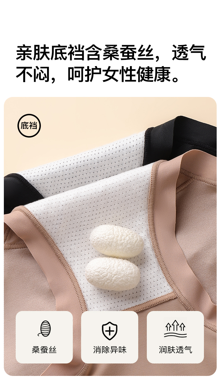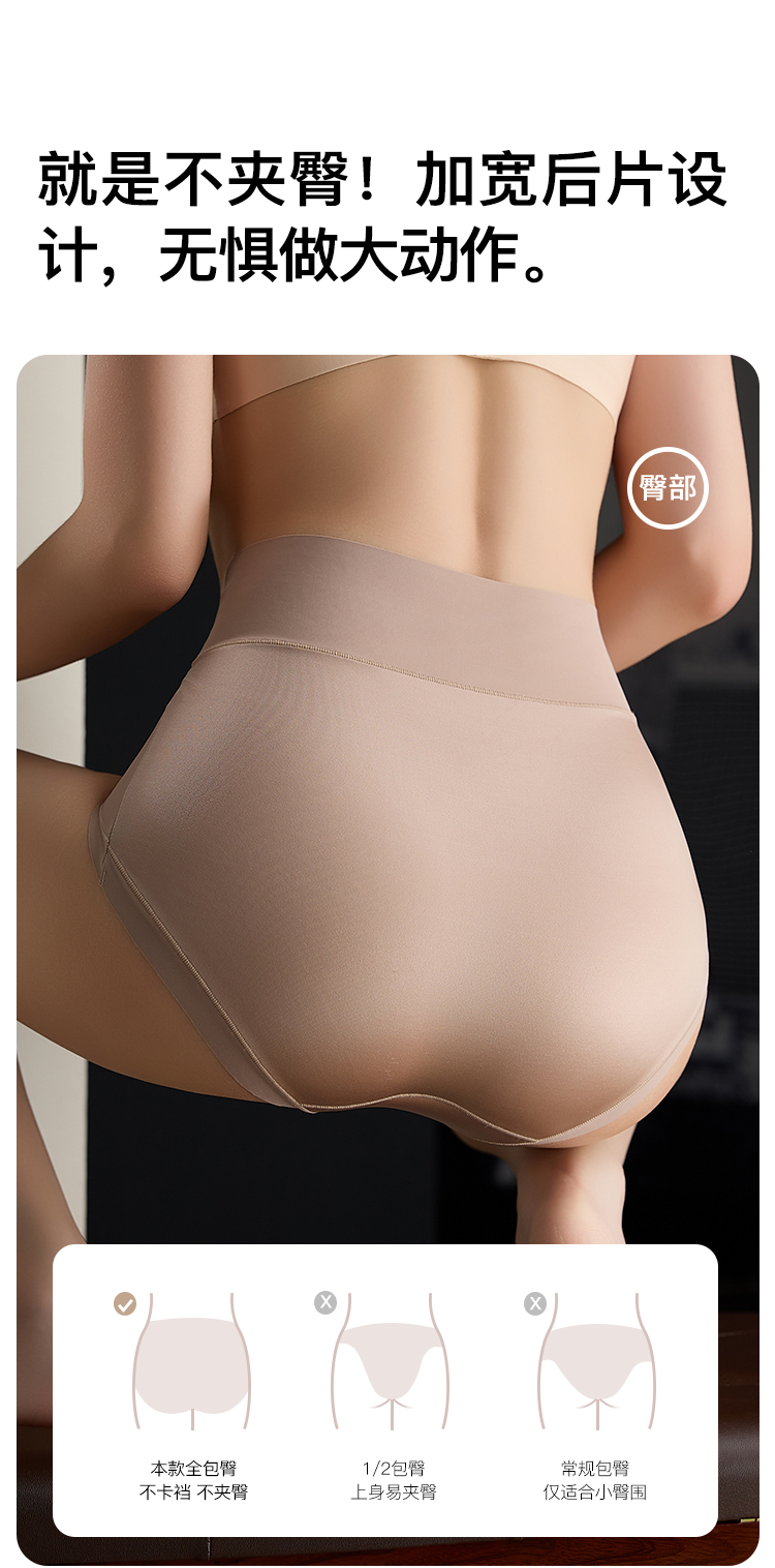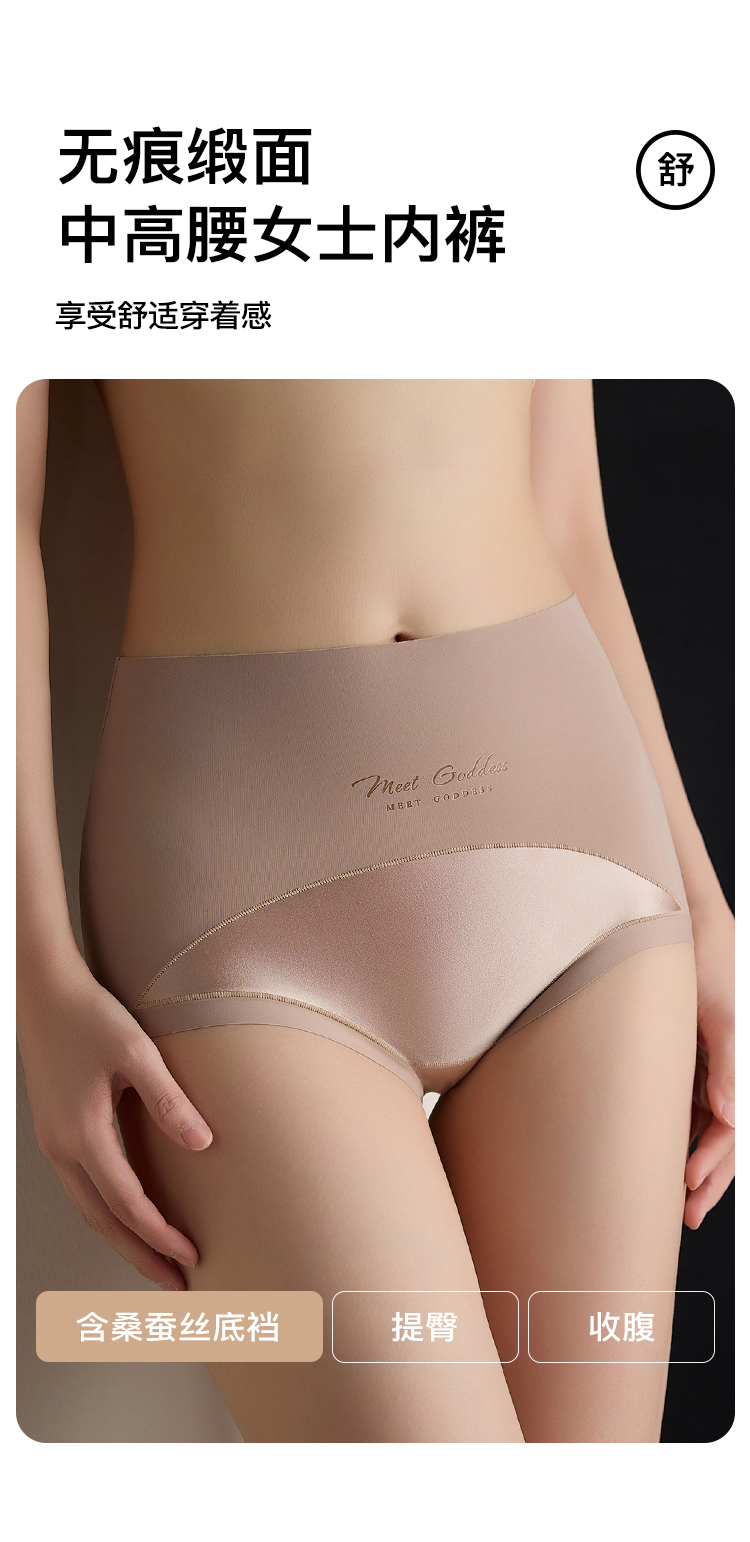【2条装】裸感无痕缎面收腹塑身裤女免穿内裤女含蚕丝透气底裆918缎面拼接内裤