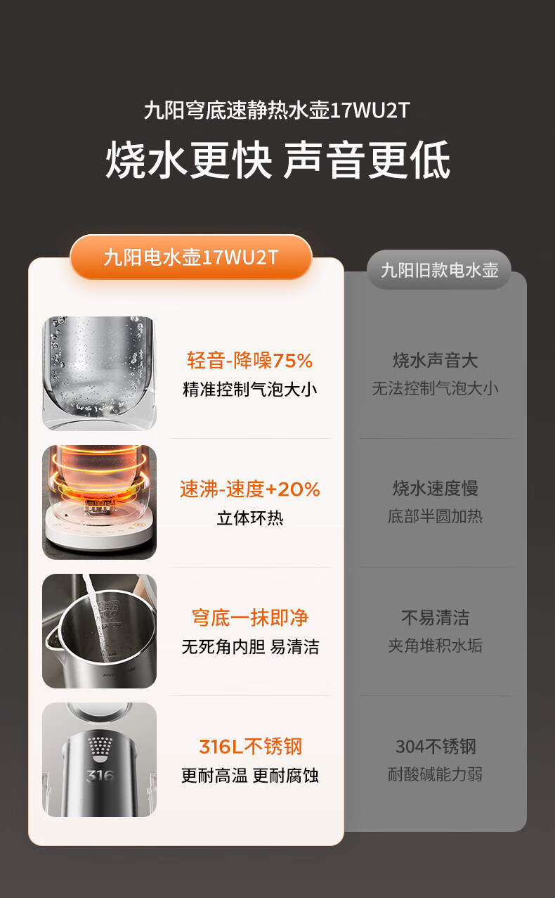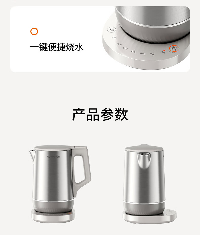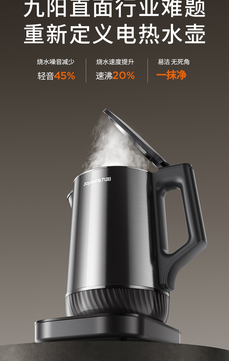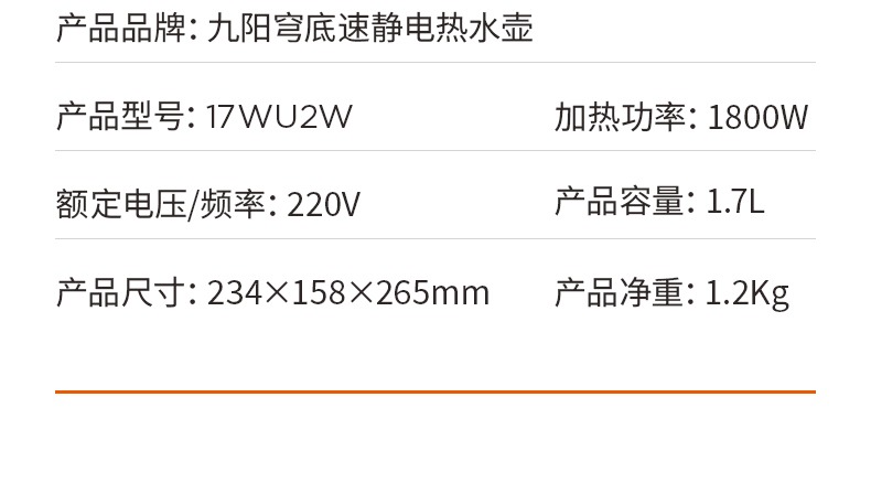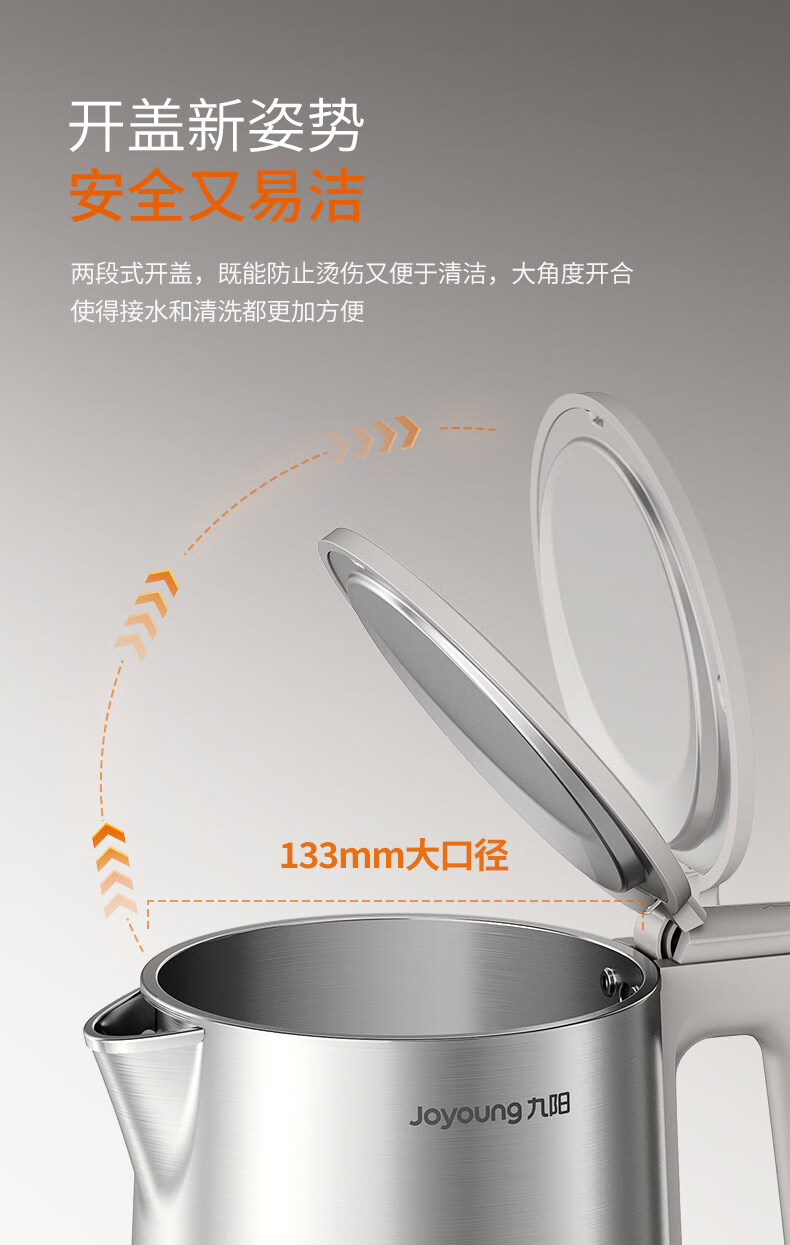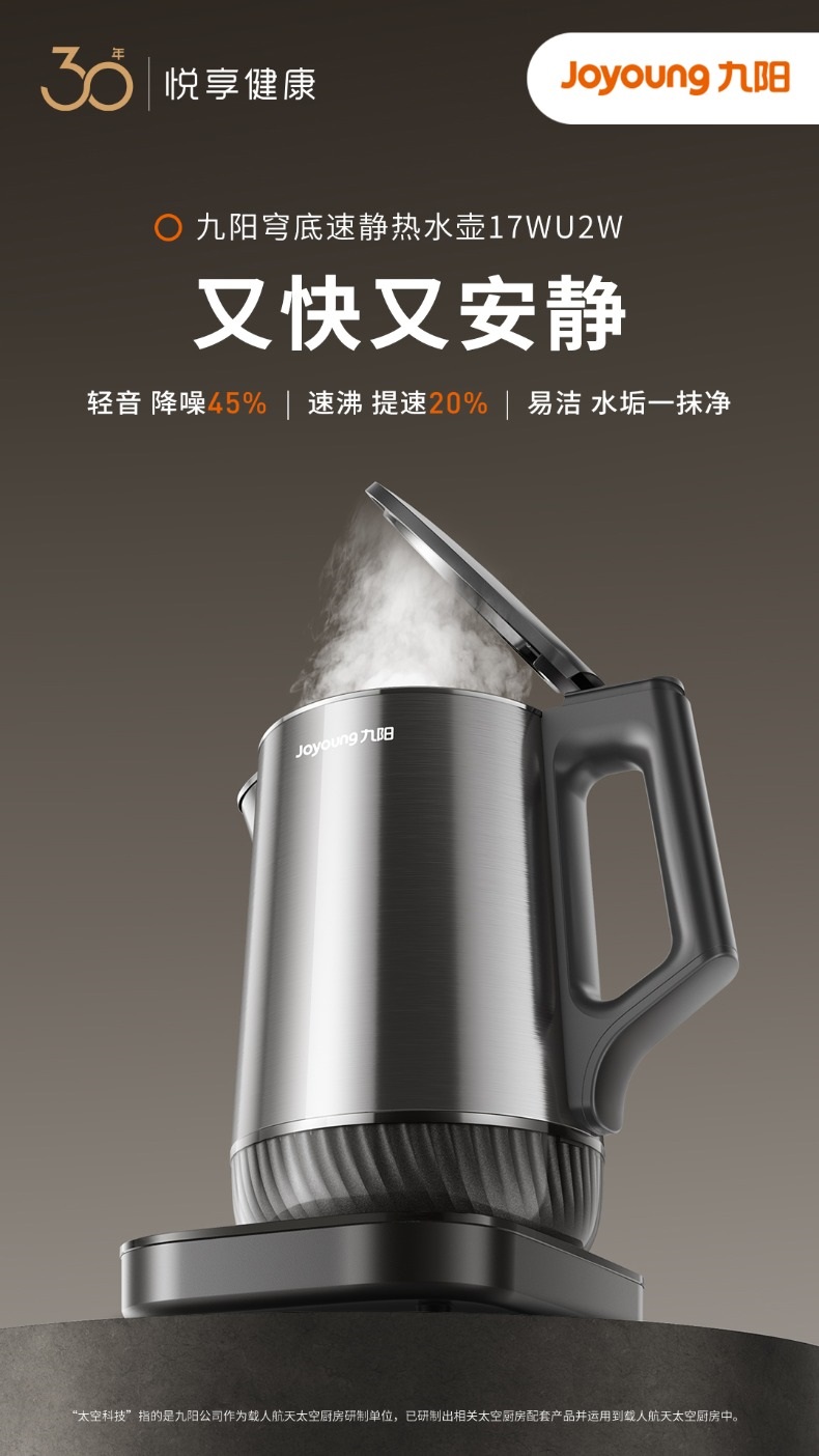 九阳穹底速静电热水壶家用1.7L轻音速沸U底易清洁316L内胆开水煲