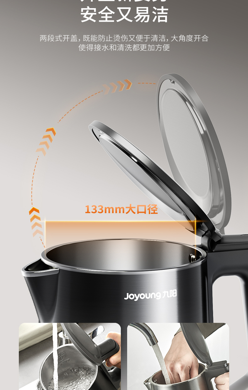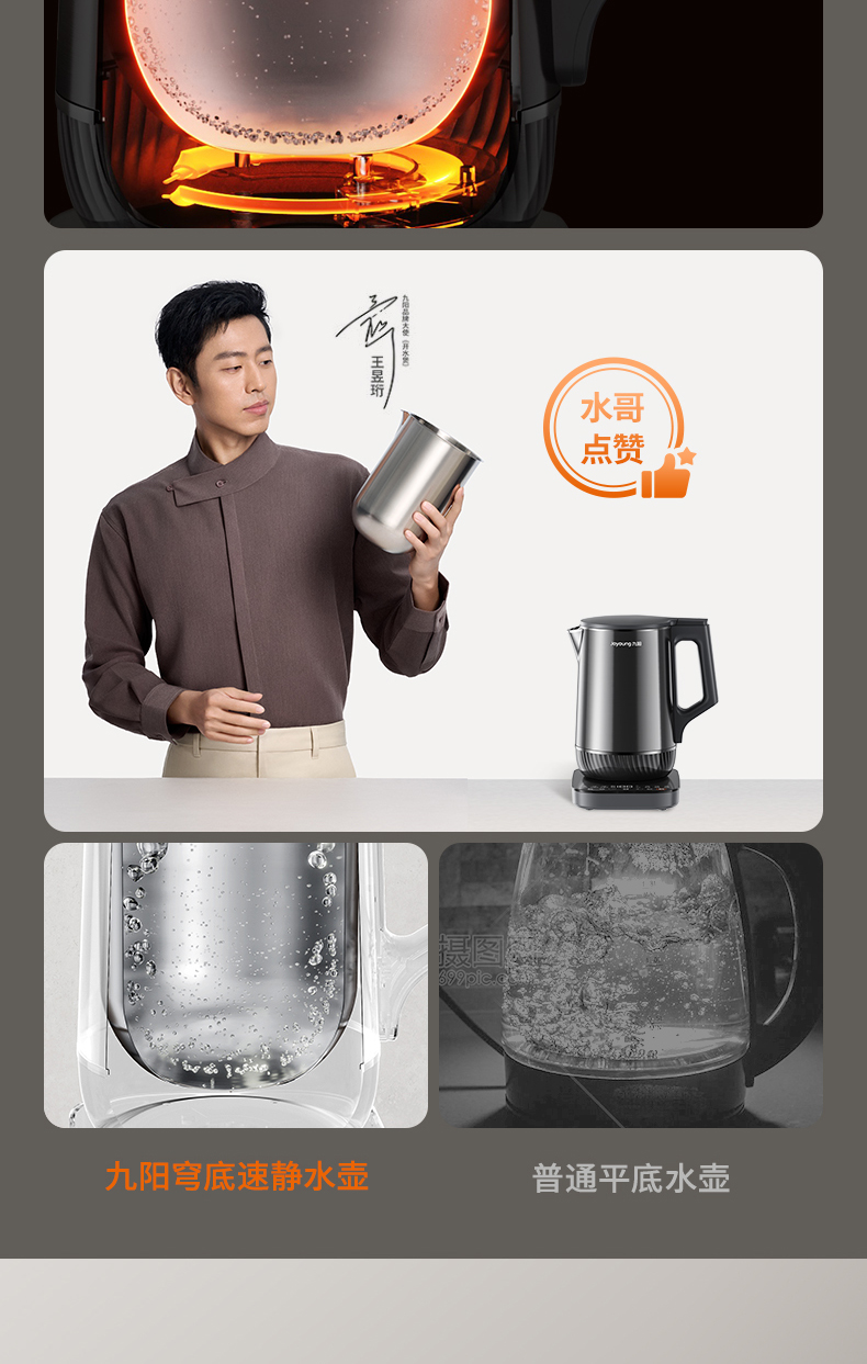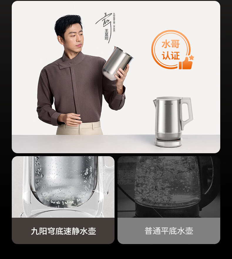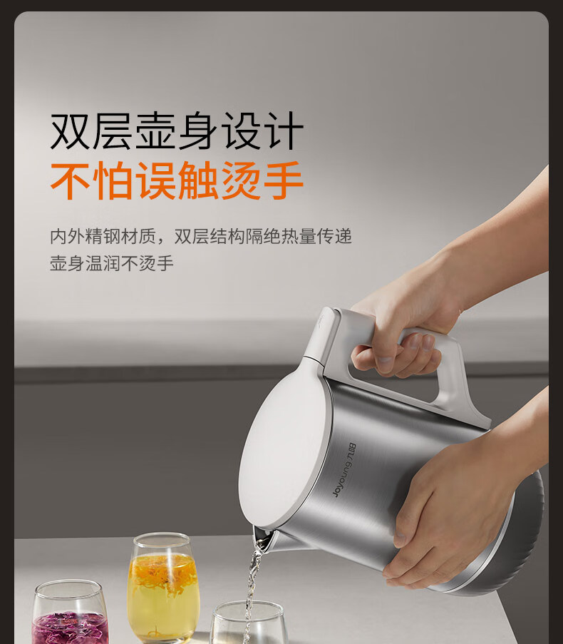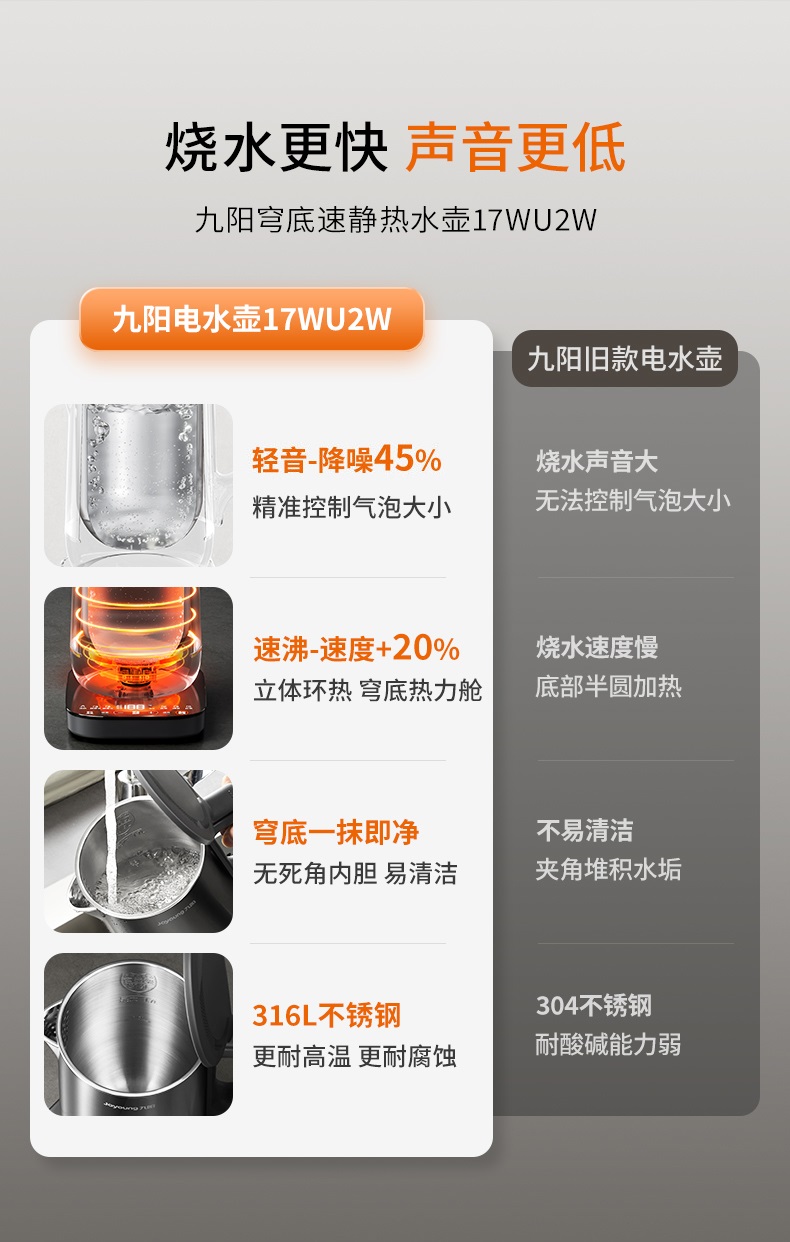 九阳穹底速静电热水壶家用1.7L轻音速沸U底易清洁316L内胆开水煲
