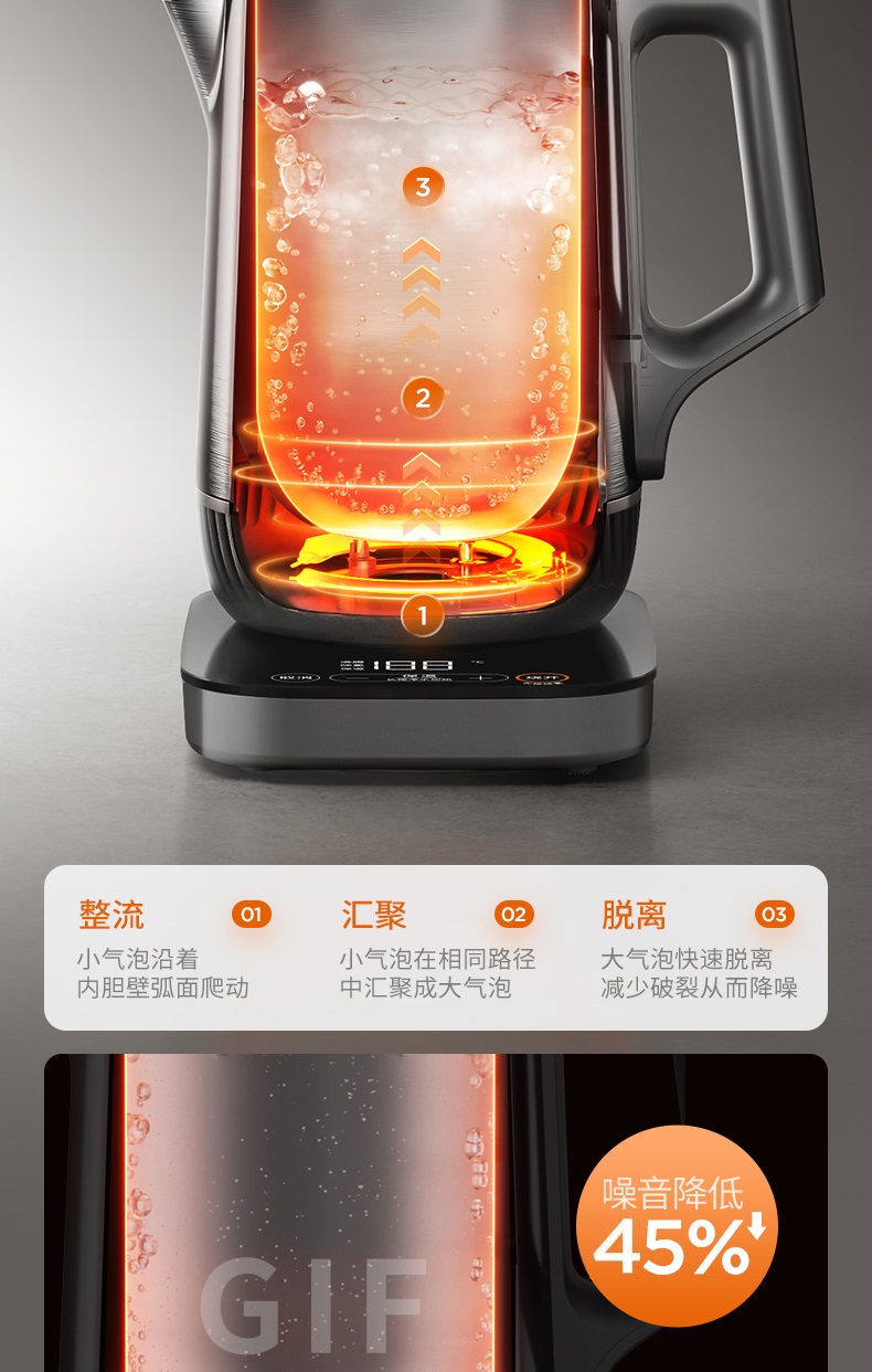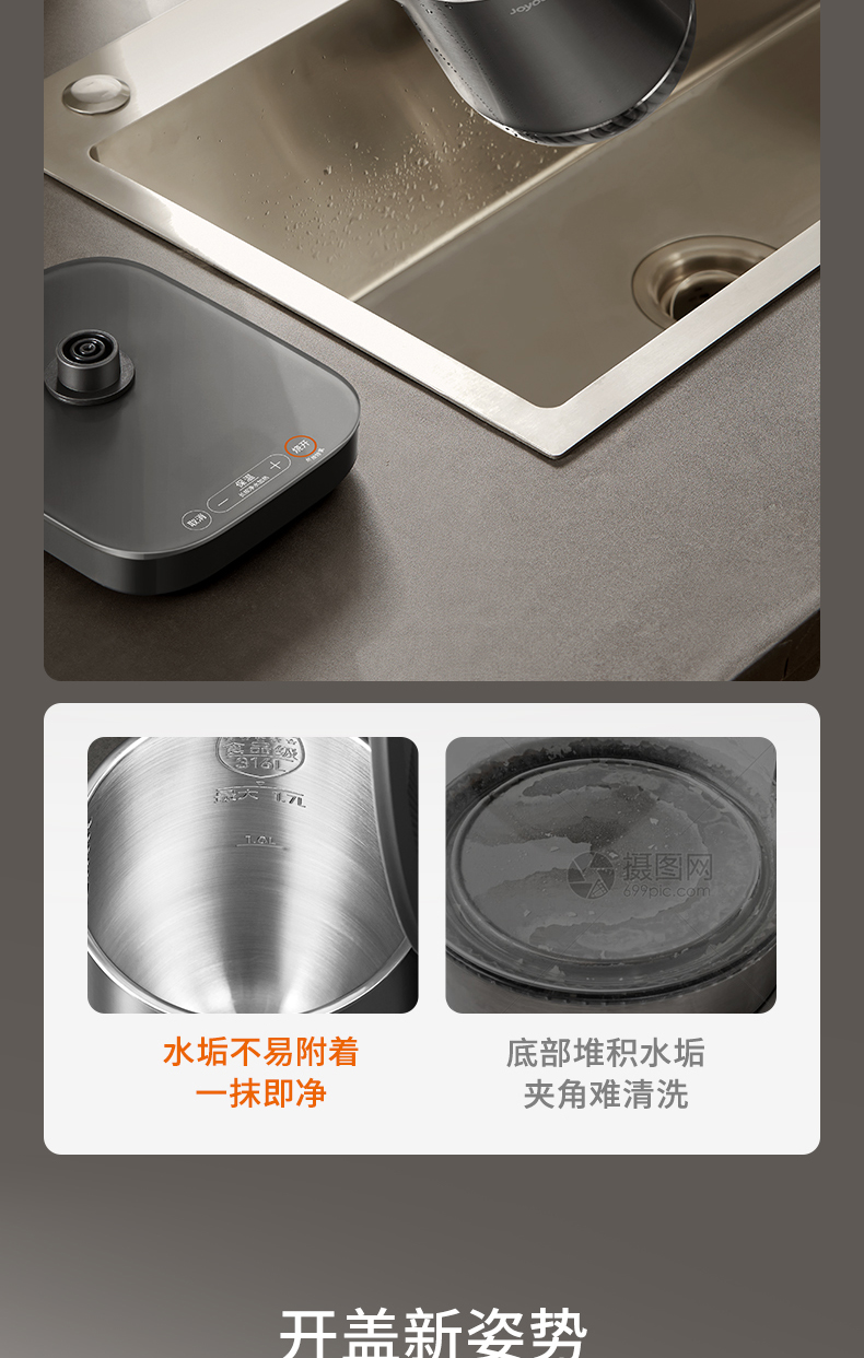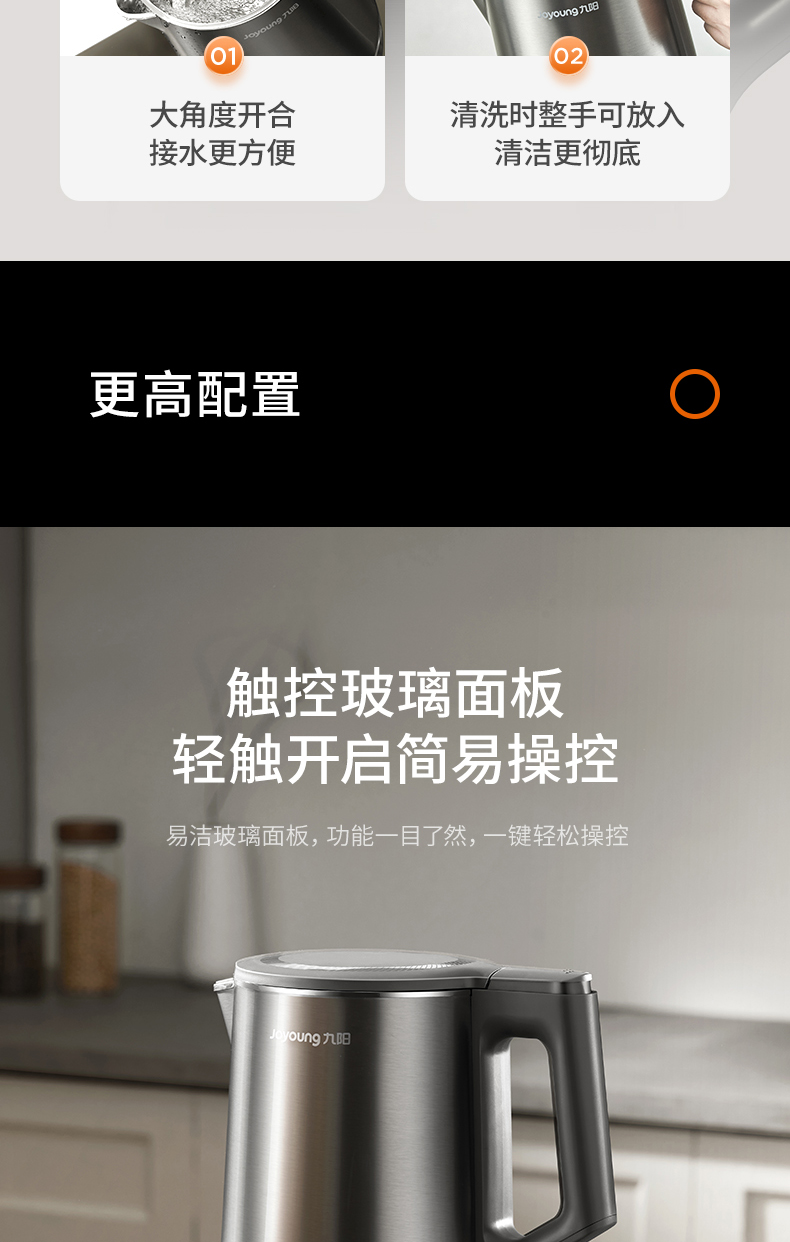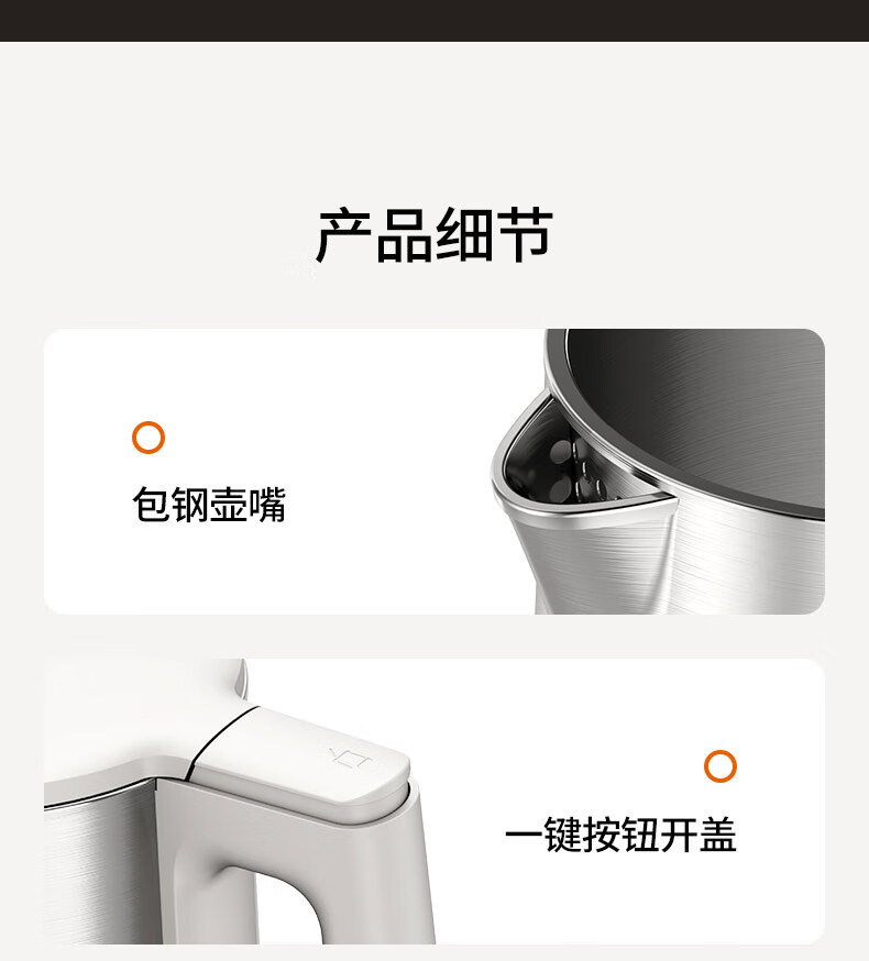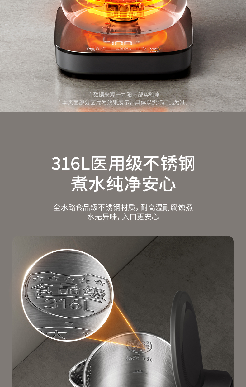 九阳穹底速静电热水壶家用1.7L轻音速沸U底易清洁316L内胆开水煲