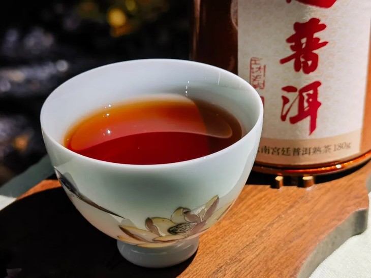 宫廷普洱选料比特级更加细嫩,被称为熟茶中的“小清新”,相较其他等级熟茶,它的茶汤口感更细腻,滋味更清美,带着明显的甜香,香甜润泽。