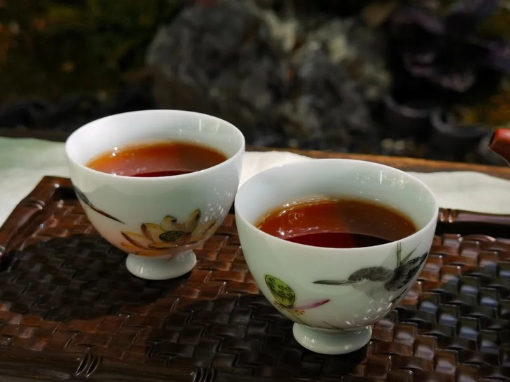 茶汤入口即“化”,略有苦底,醇,甜,厚,滑,润,幼嫩茶菁特有的荷香、自然陈化后的陈熟香溢满口腔,茶韵绵绵,喉部有清凉感。