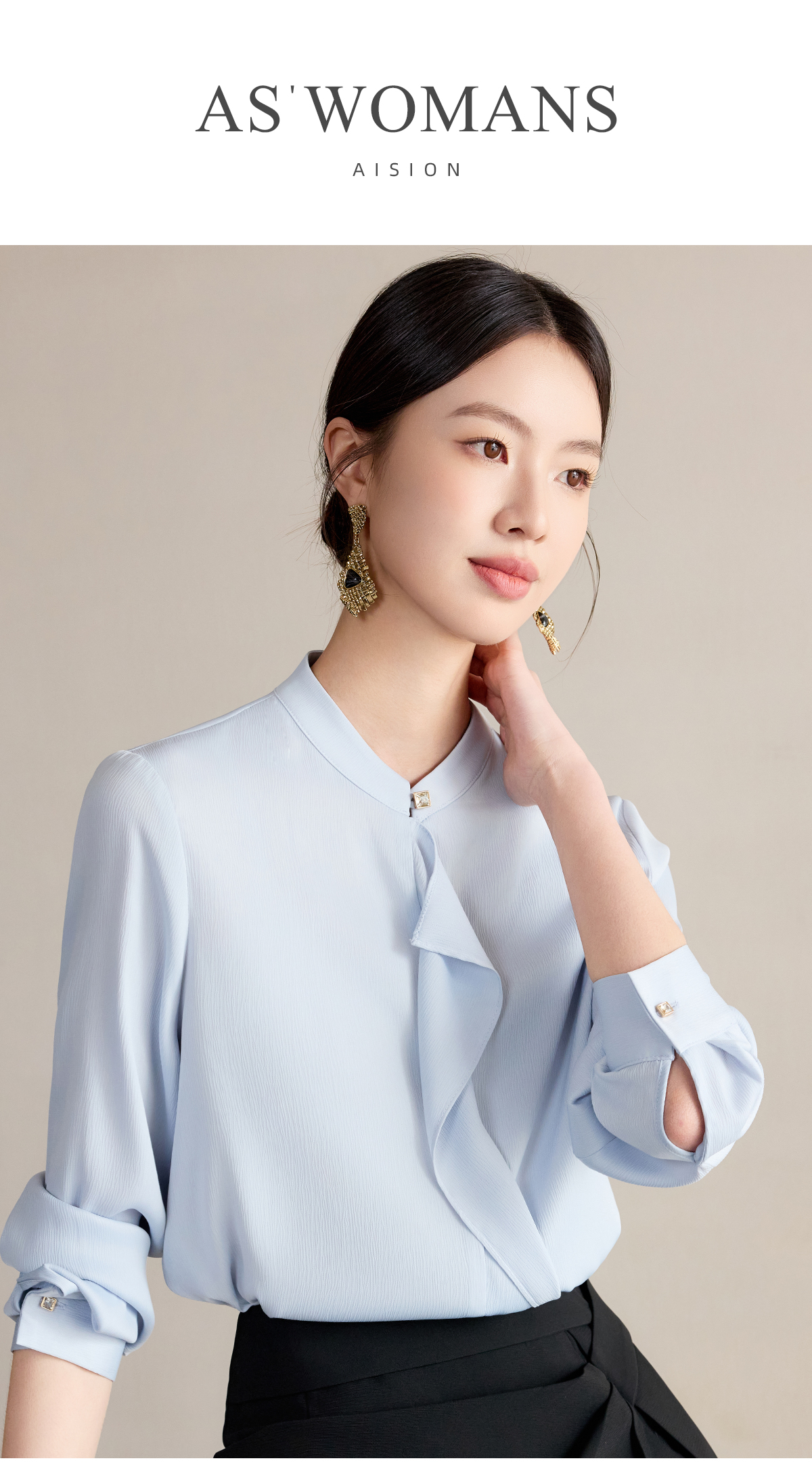 艾尚臣衬衫女春夏蓝色长袖上衣2025新款通勤衬衣女士法式气质小衫
