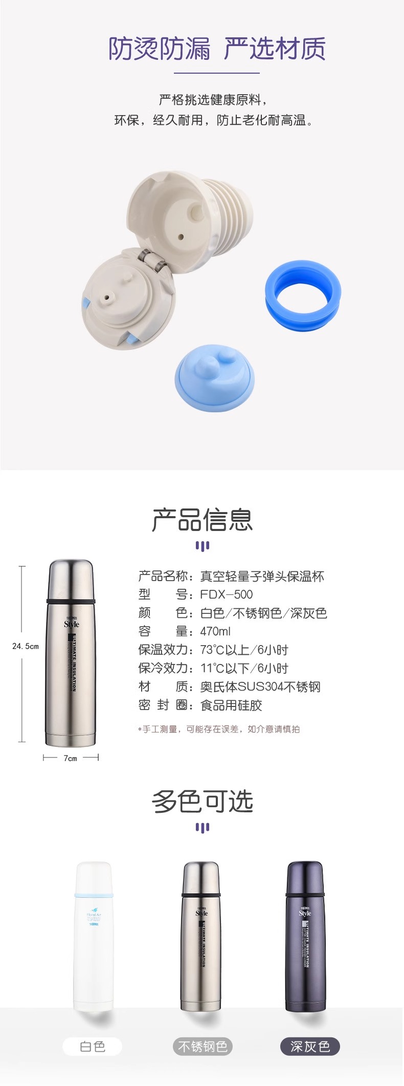 膳魔师不锈钢真空保温杯男女士便携茶杯直身杯子弹头水瓶