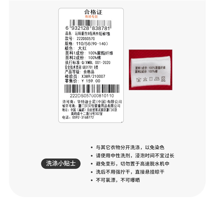 迪士尼玩转新生假两件夏日短袖T恤222DS0570