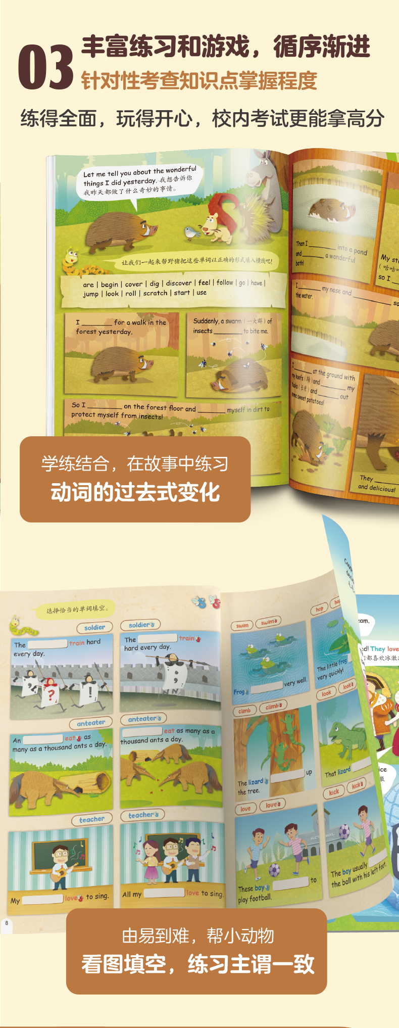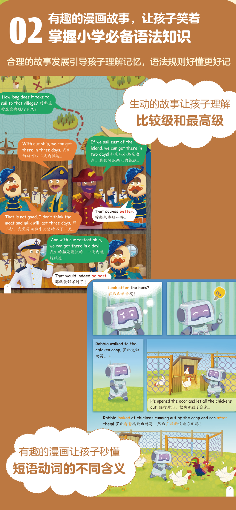 | 1 单词警官大搜查lt;brgt; 2 海军上将和比较级、樶高级lt;brgt; 3 动词王后和时态lt;brgt; 4 数量词伯爵lt;brgt; 5 王后和丰富的动词lt;brgt; 6 冠词小骑士lt;brgt; 7 短语动词与句子分类lt;brgt; 8 艺术家和百变的副词lt;brgt; 9 名词和动词的一致协议lt;brgt; 10 be动词家族lt;brgt; |