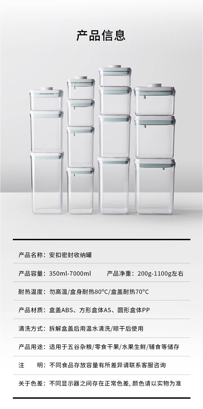 【母婴级标准 一滴不漏】安扣按压式保鲜储物罐 家用食品收纳盒 透明密封盒厨房防 潮密封罐