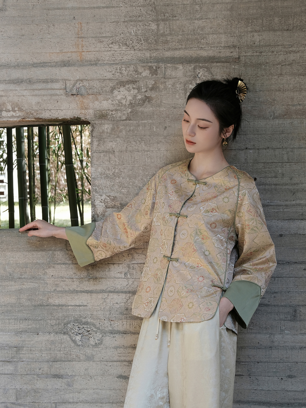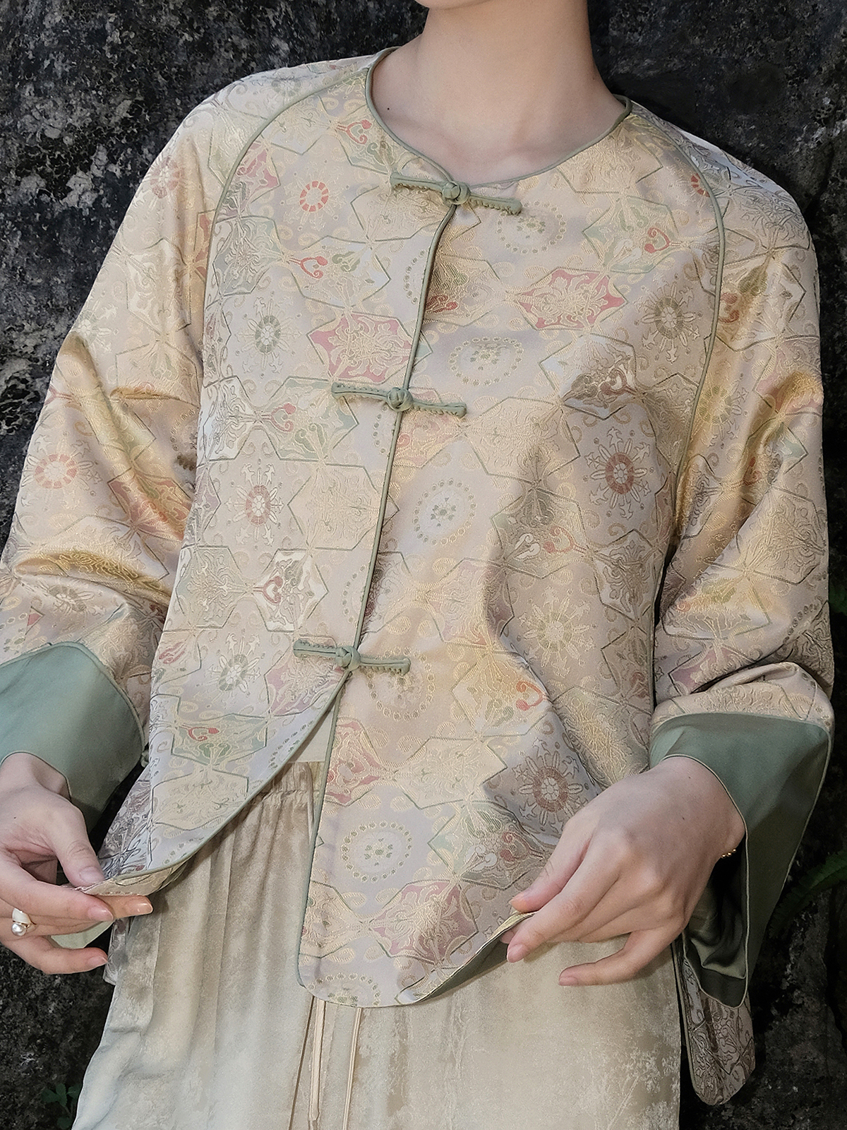 盛唐婧 |真丝宋锦春意盎然外套