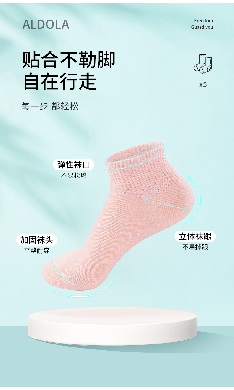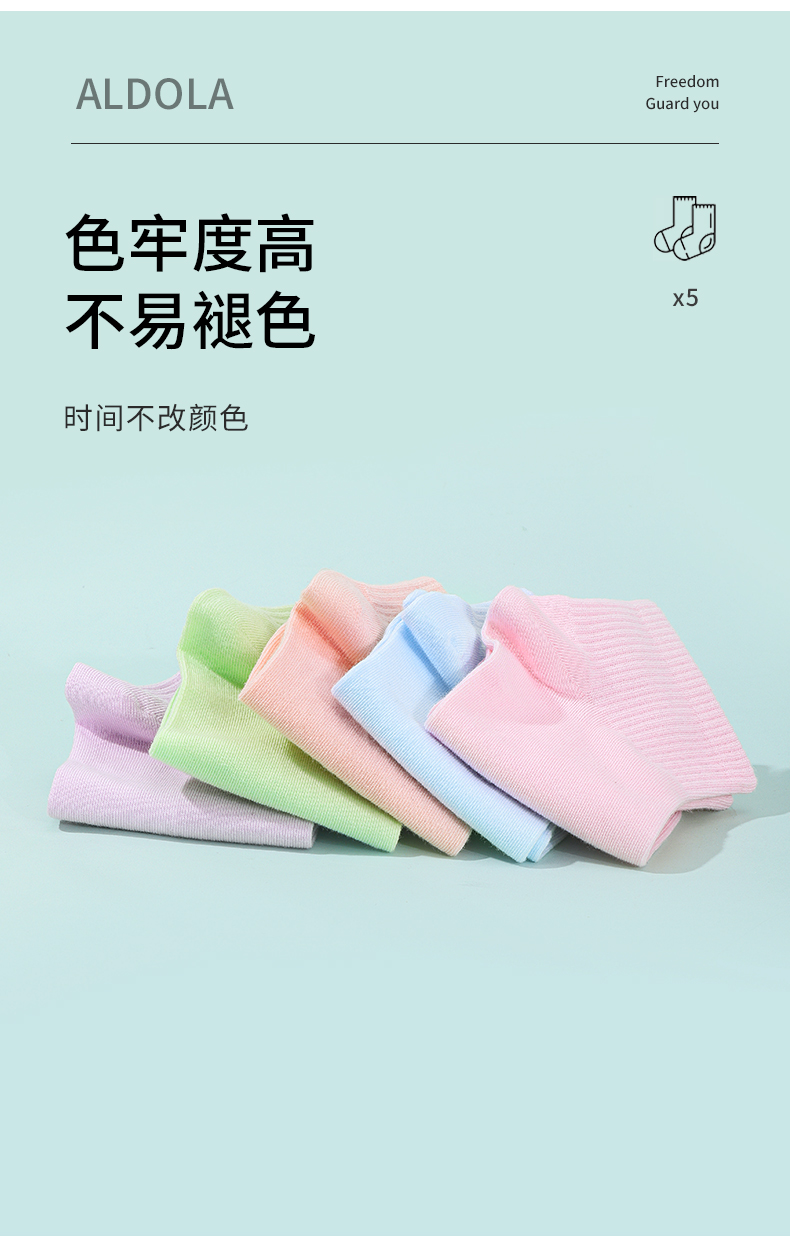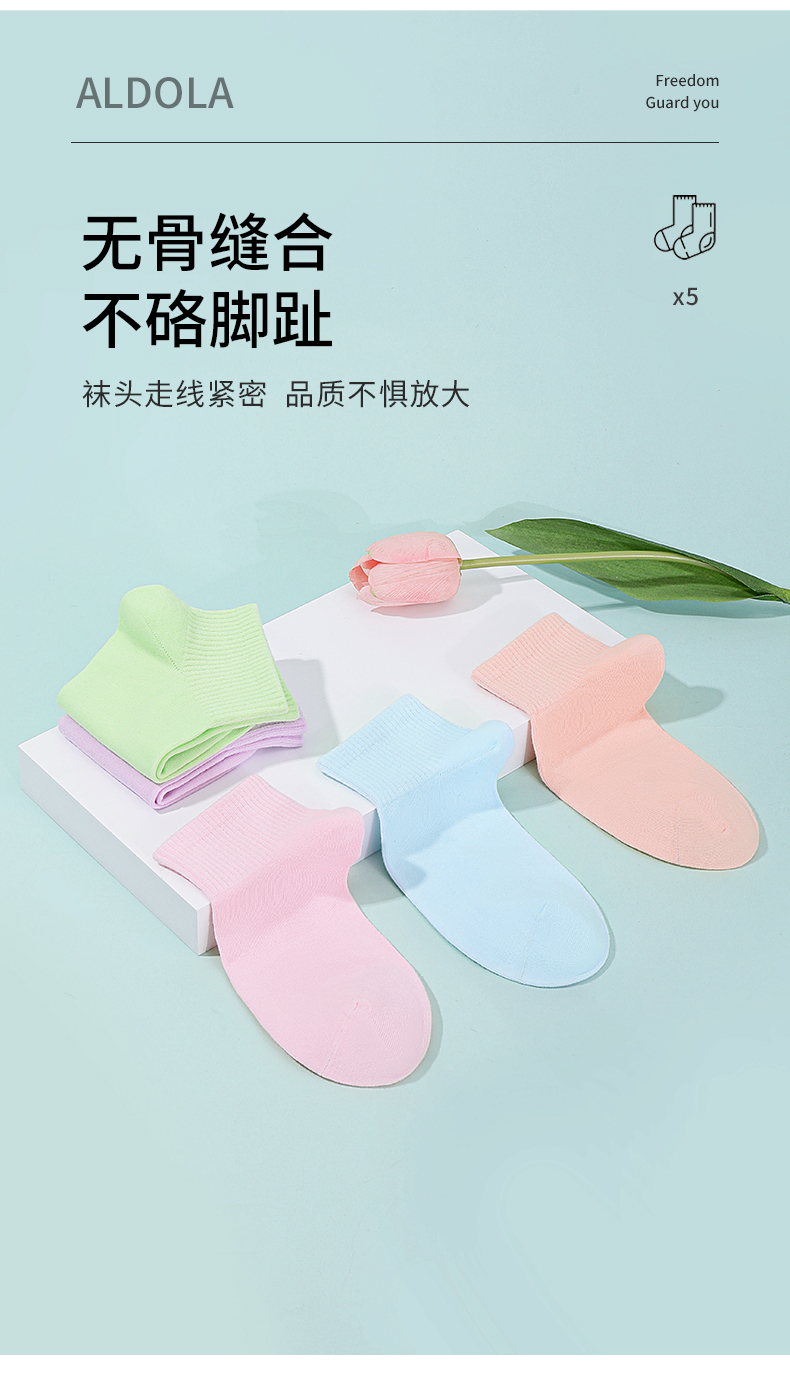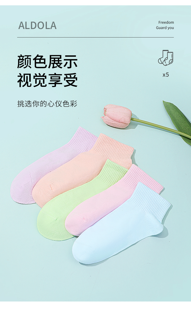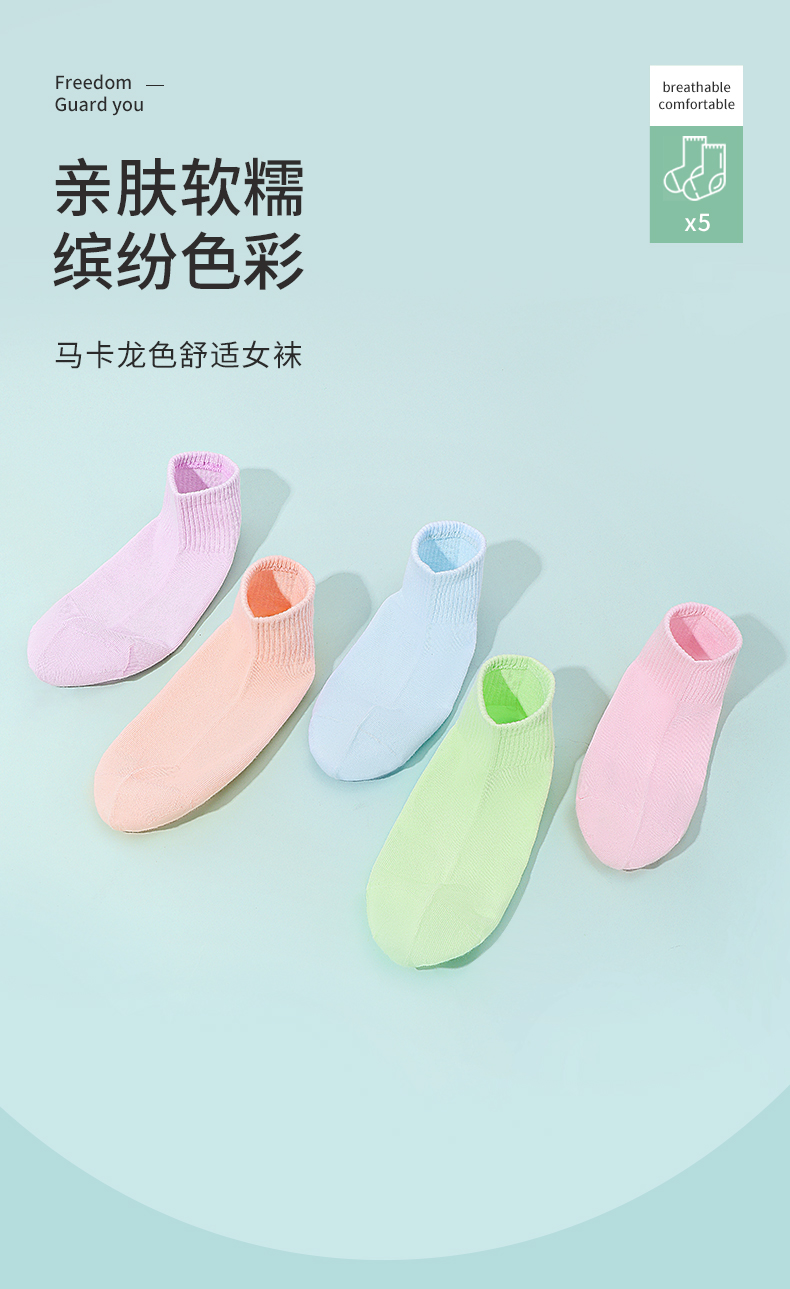 雅黛丽袜子女短袜棉春夏舒适亲肤高弹透气马卡龙色系5双装