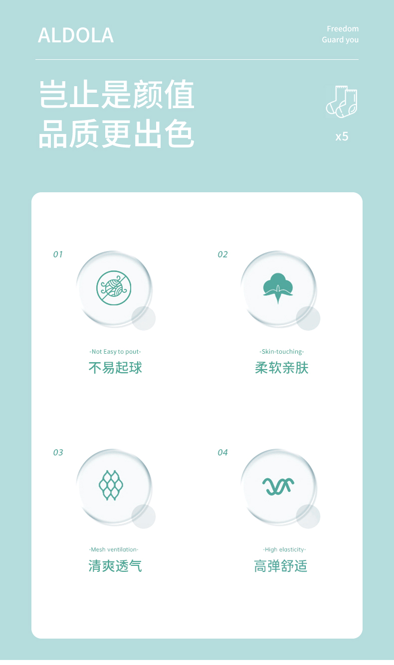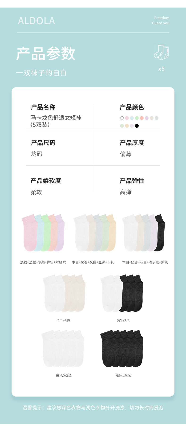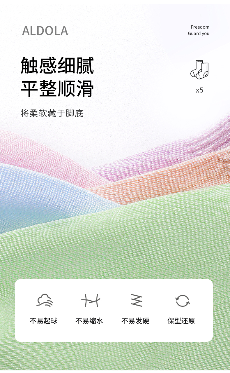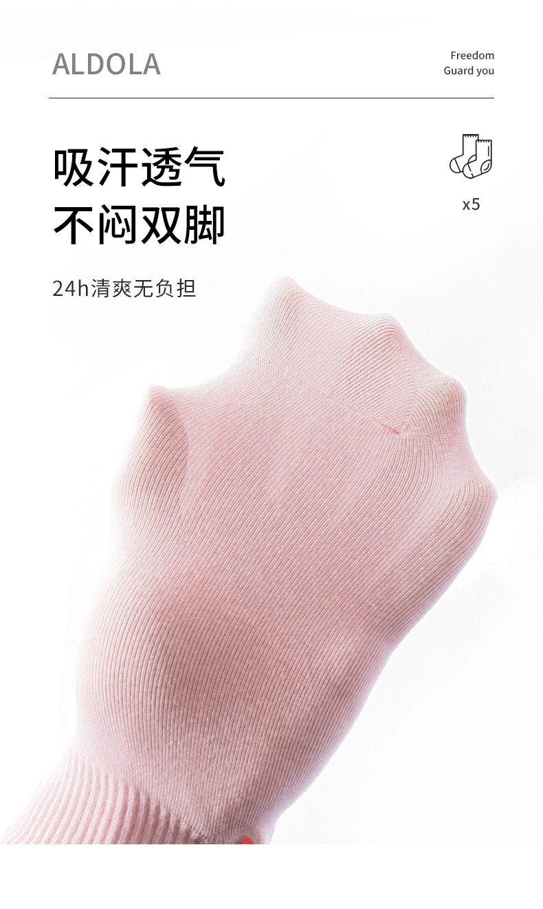 雅黛丽袜子女短袜棉春夏舒适亲肤高弹透气马卡龙色系5双装