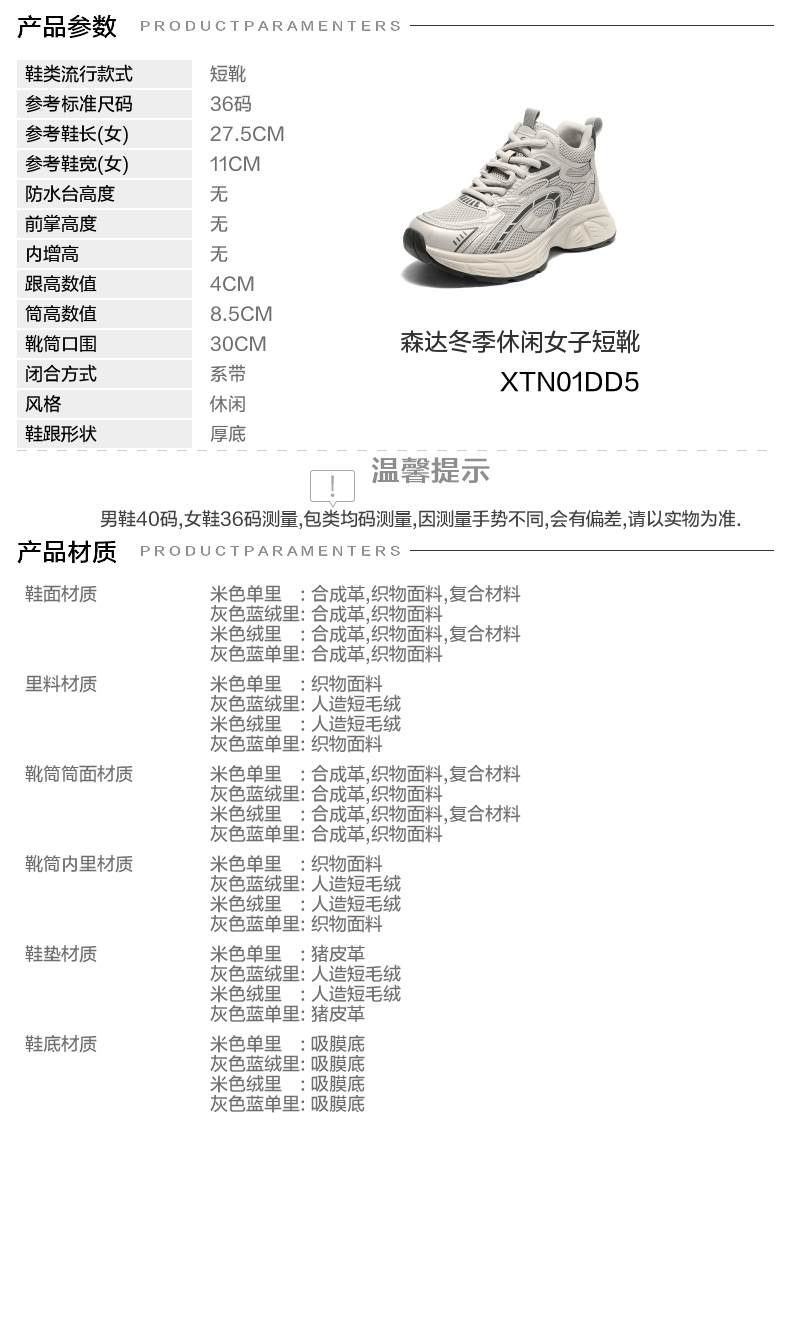 【云粉节】BF楼 森达厚底老爹鞋2025冬季新款高帮增高运动休闲鞋XTN01吊牌价899活动价399