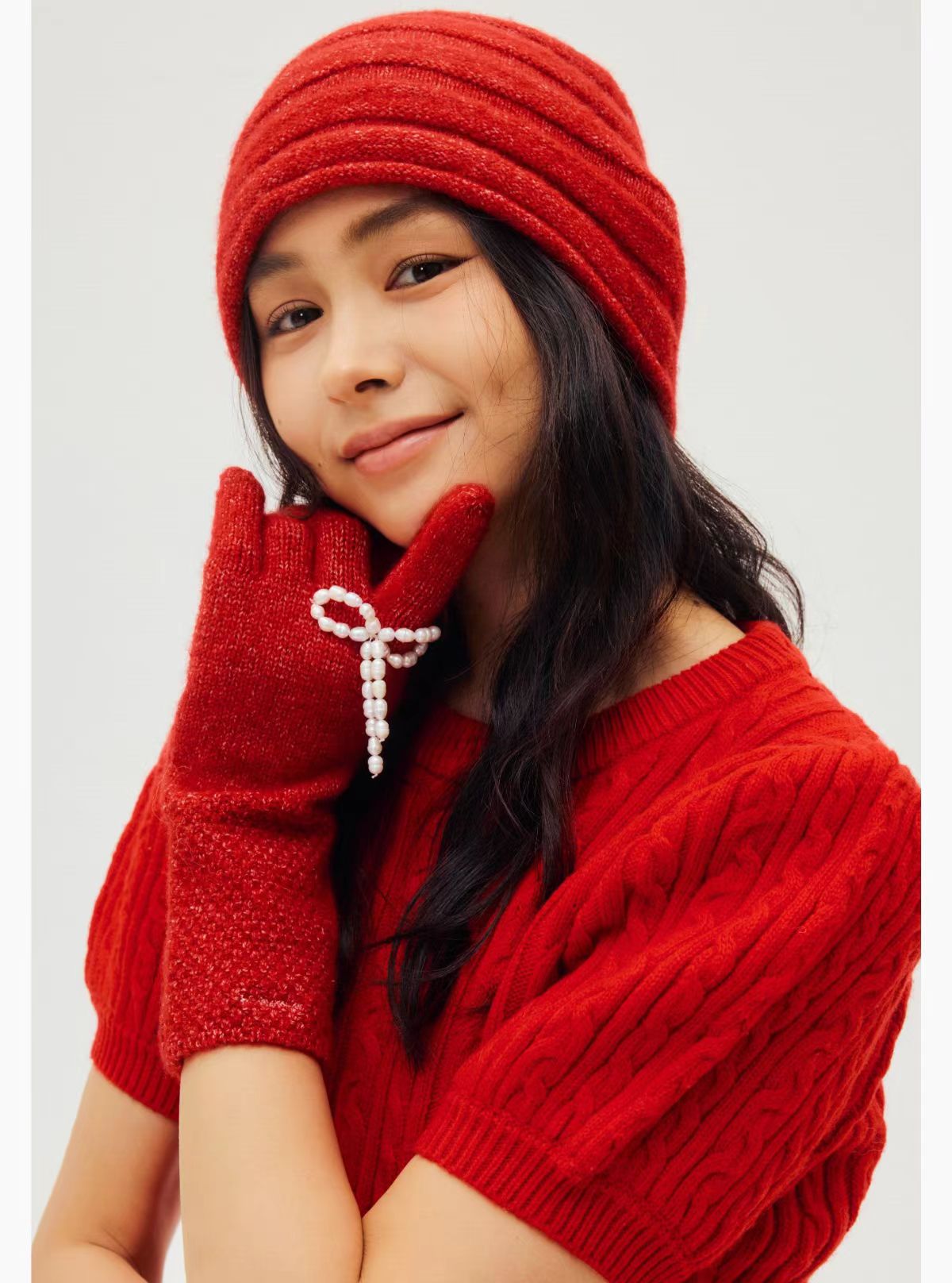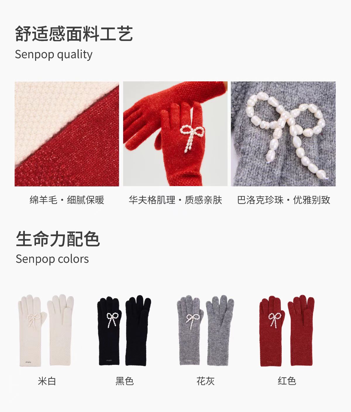 4楼Eubelle欧蓓 上森派系 红色手套轻薄保暖女士 秋冬 活动价:319.9元