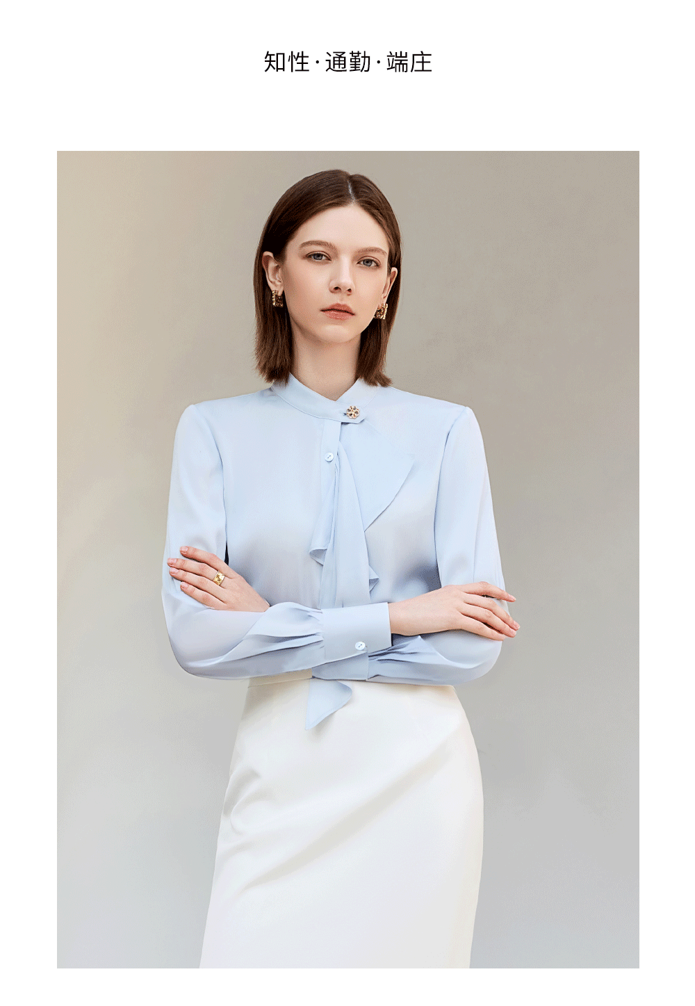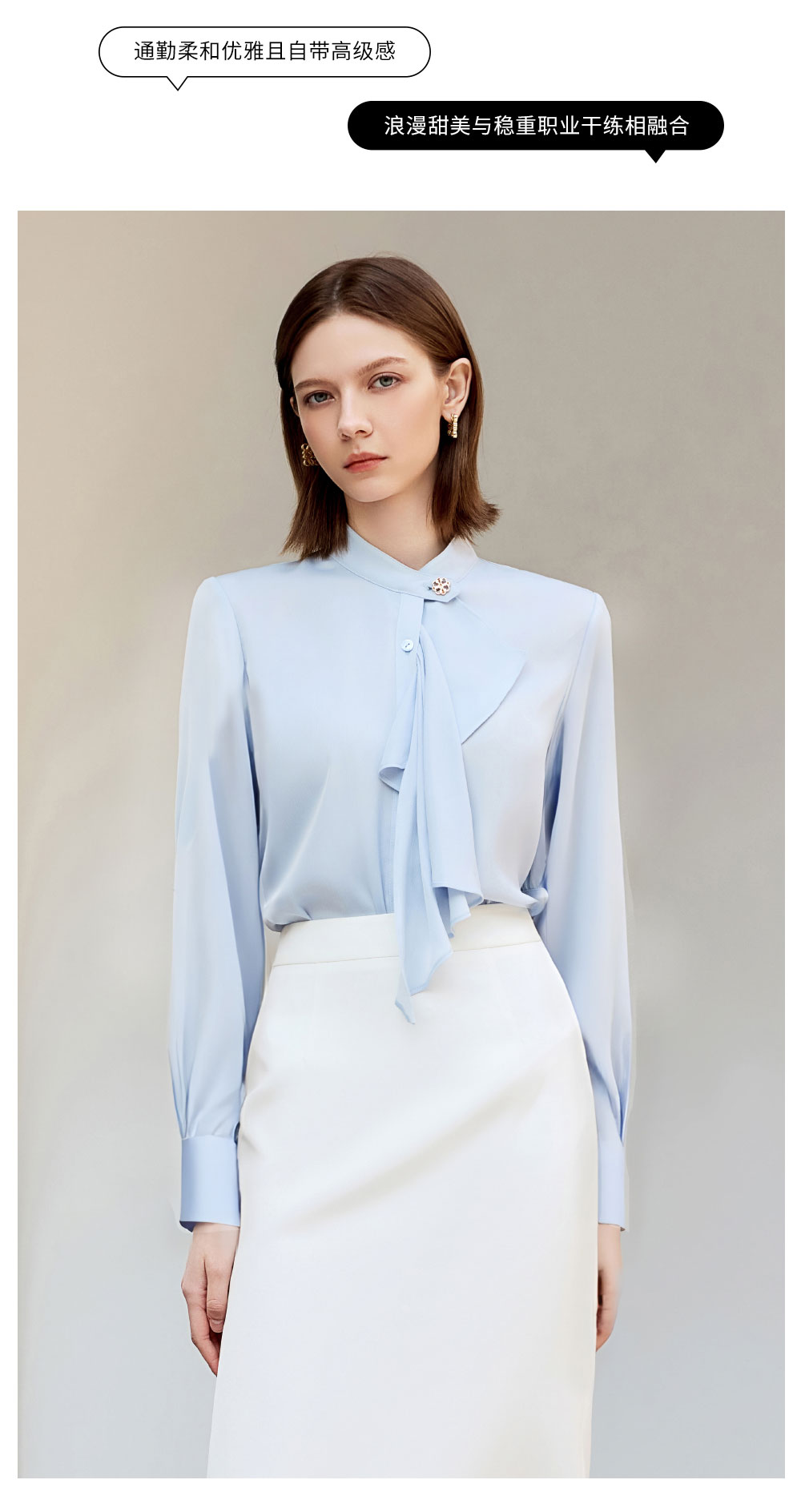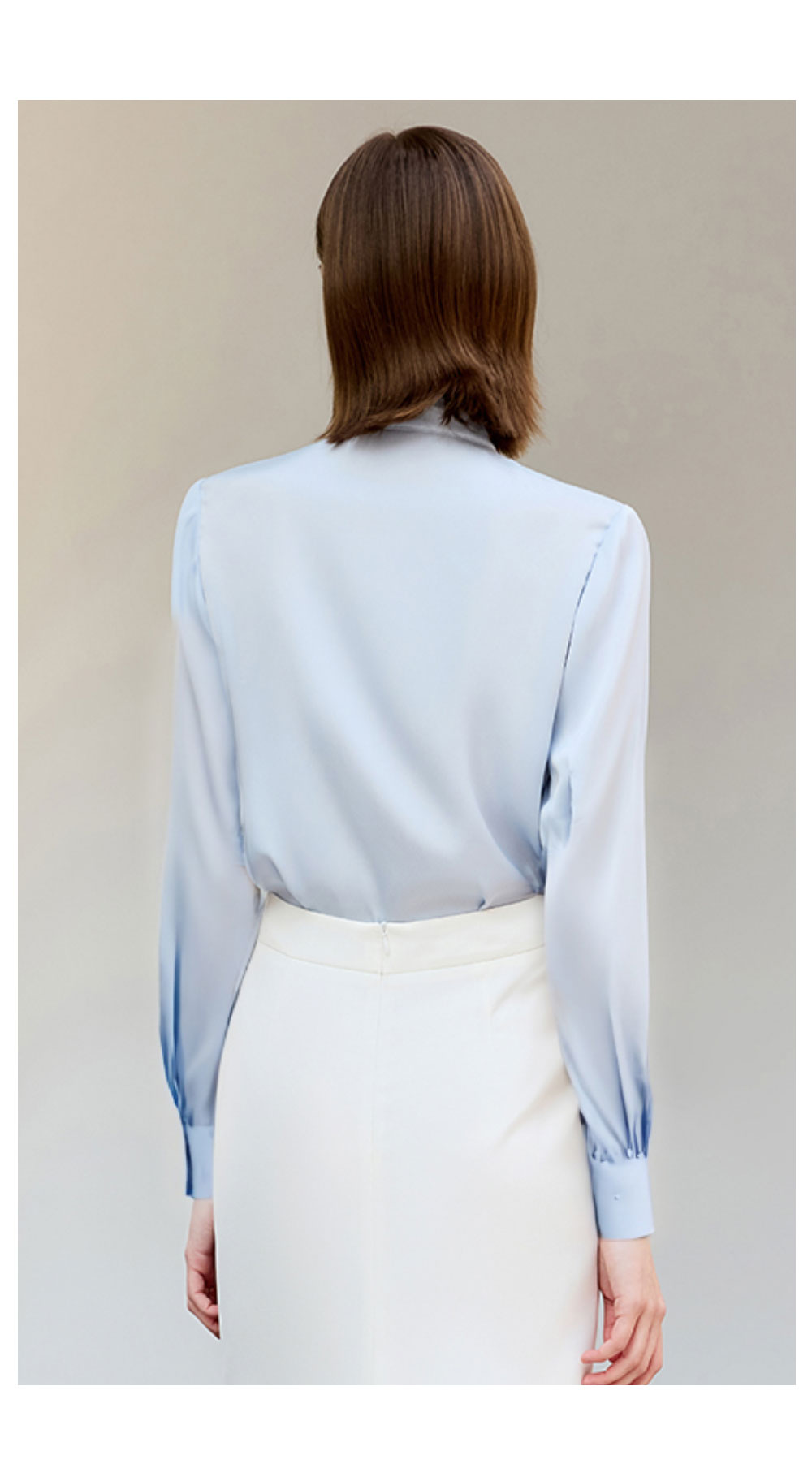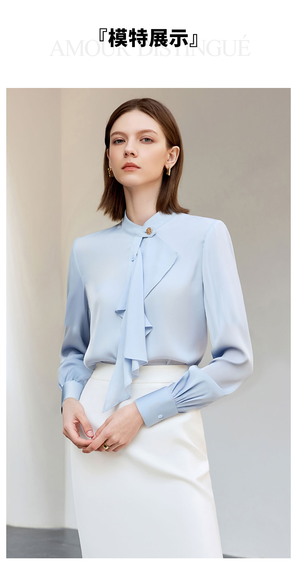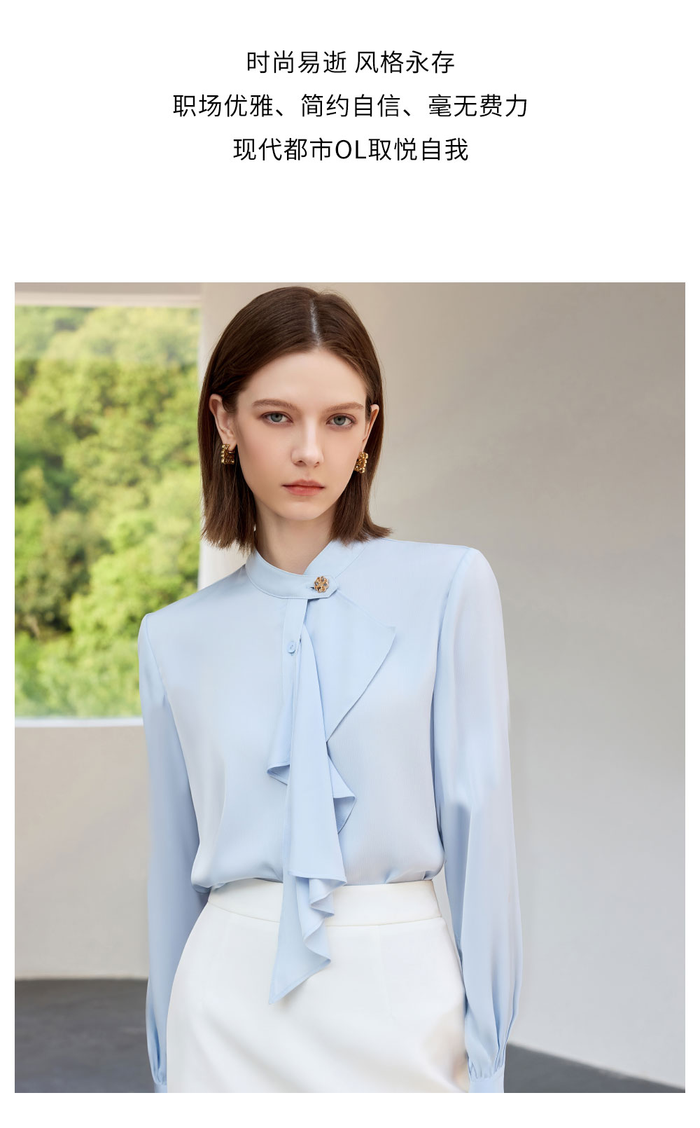 AD立体褶裥蓝色衬衫女士通勤职业装衬衣时尚优雅高级感气质长袖