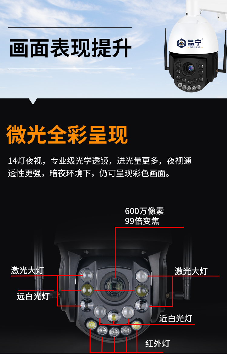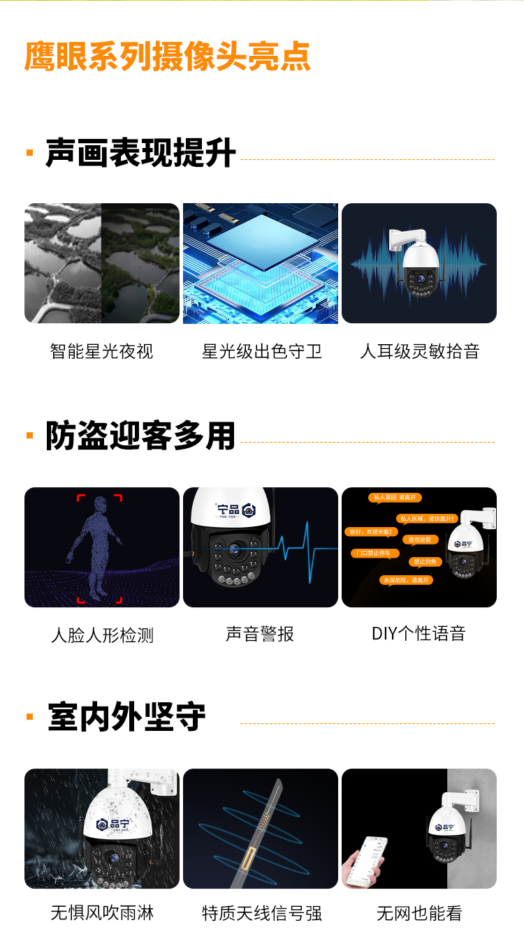品宁鹰眼7号4G免充值99倍变焦全彩夜视自动巡航360度旋转