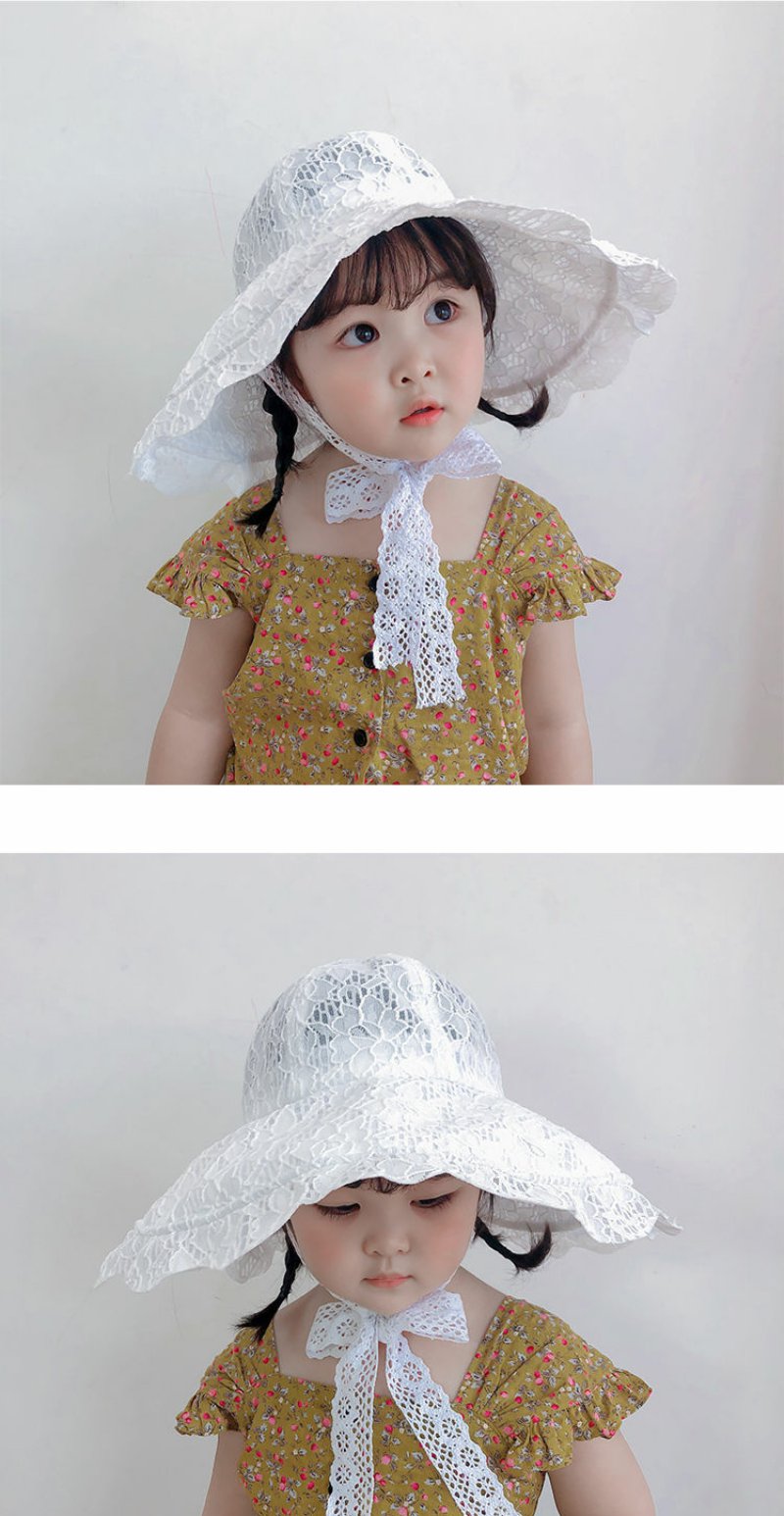 儿童夏季防晒帽大檐女童薄款太阳帽蕾丝公主帽子女宝宝洋气遮阳帽