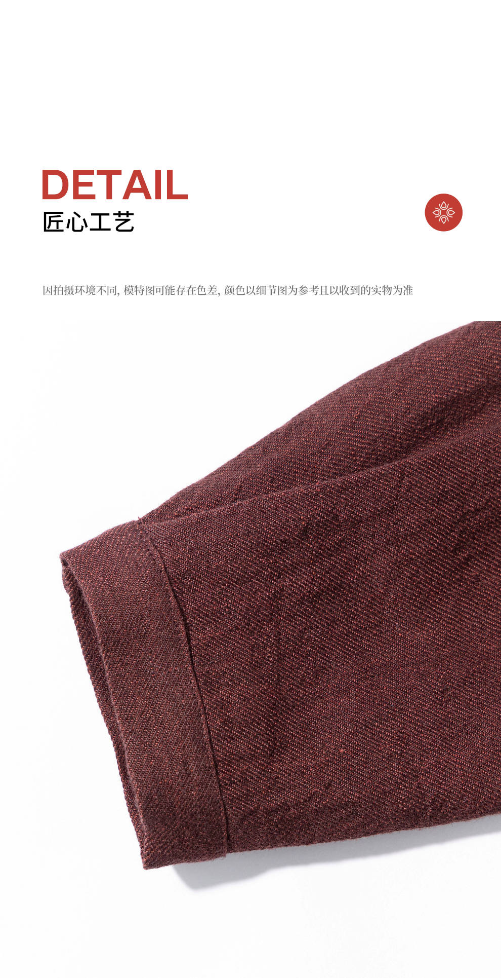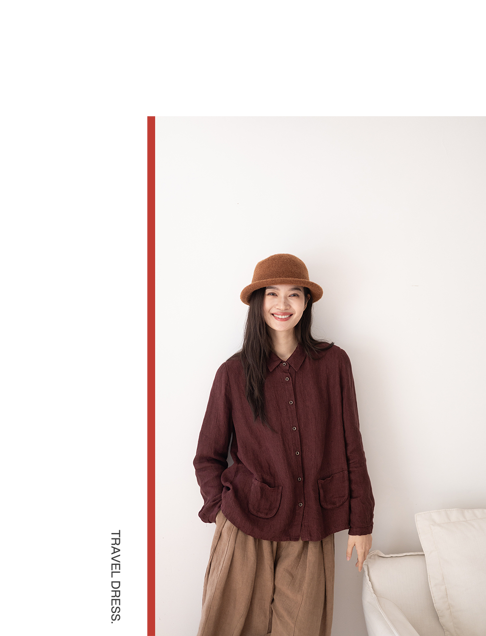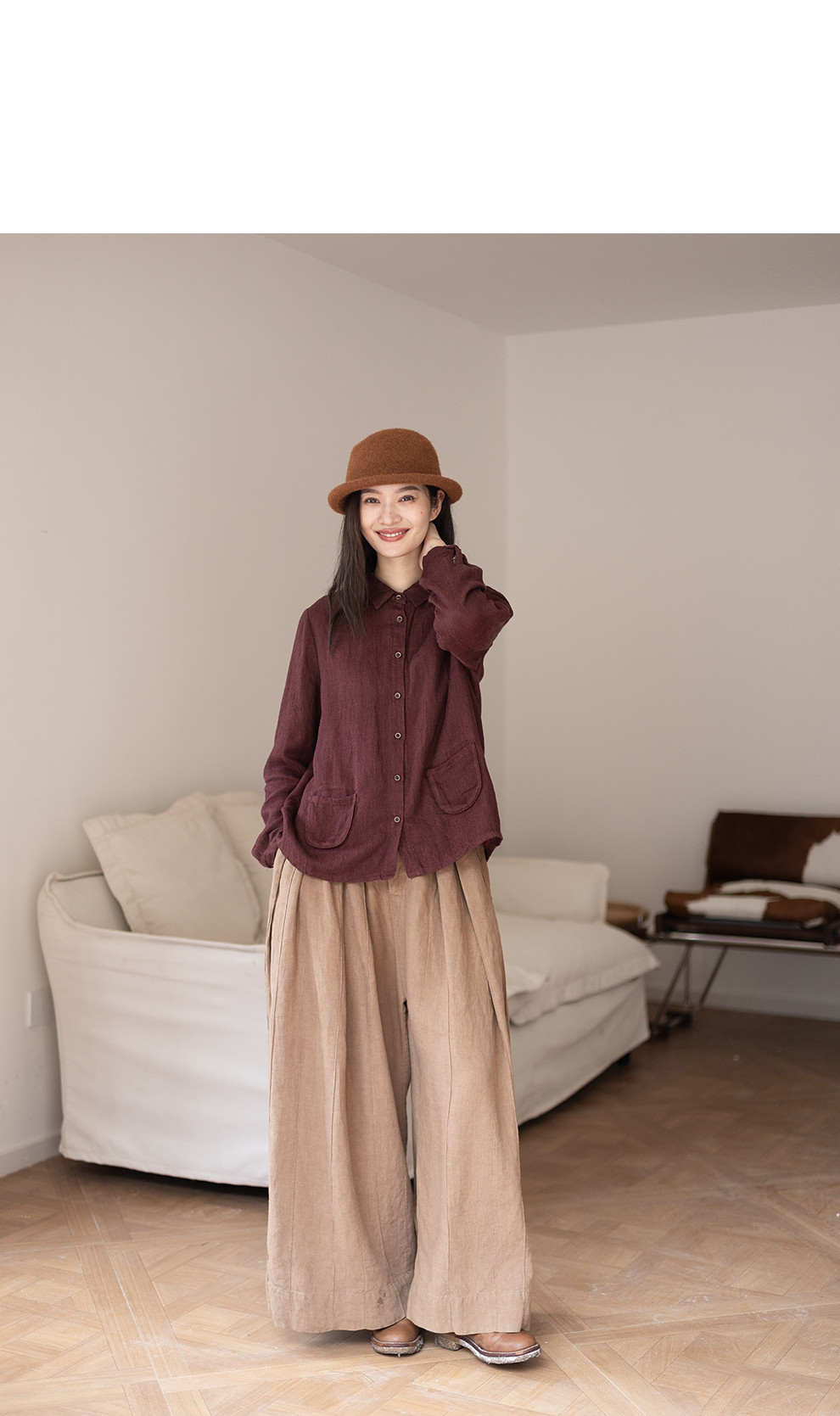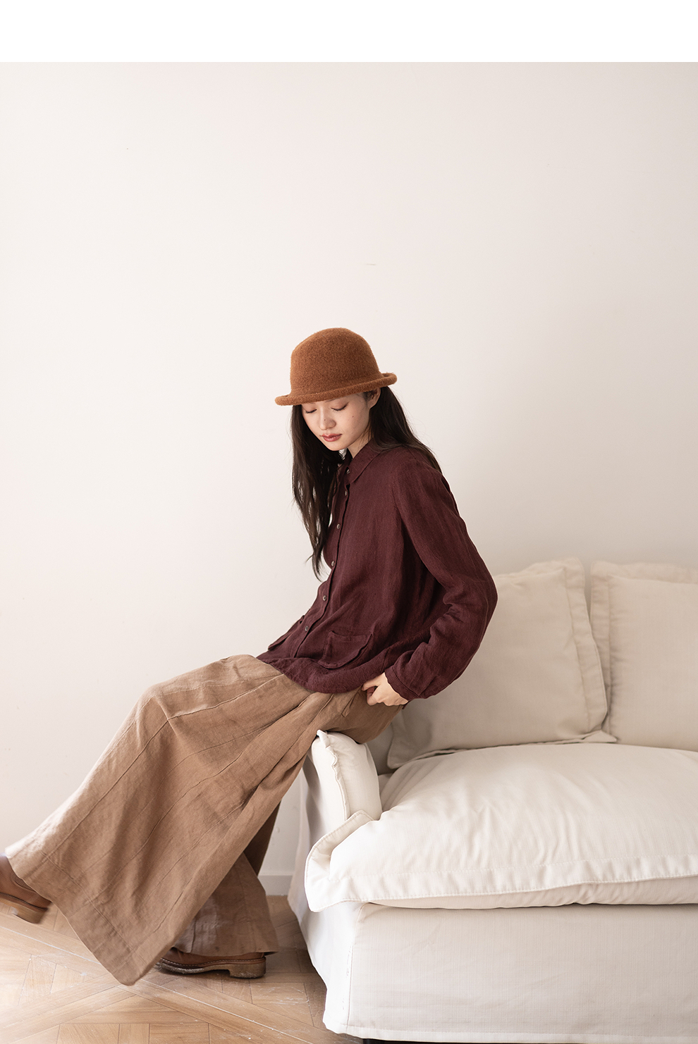 绽放799朵/色织亚麻法式文艺翻领长袖小口袋衬衫秋冬新款叠搭小衫