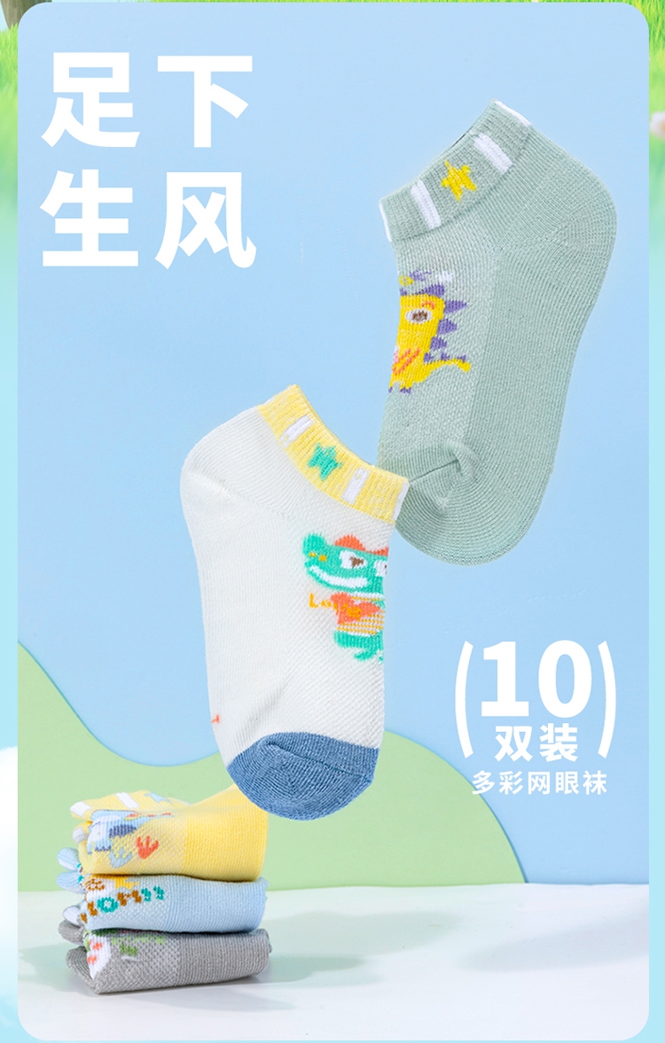贝贝怡男童袜子10双装亲肤透气童趣卡通袜子