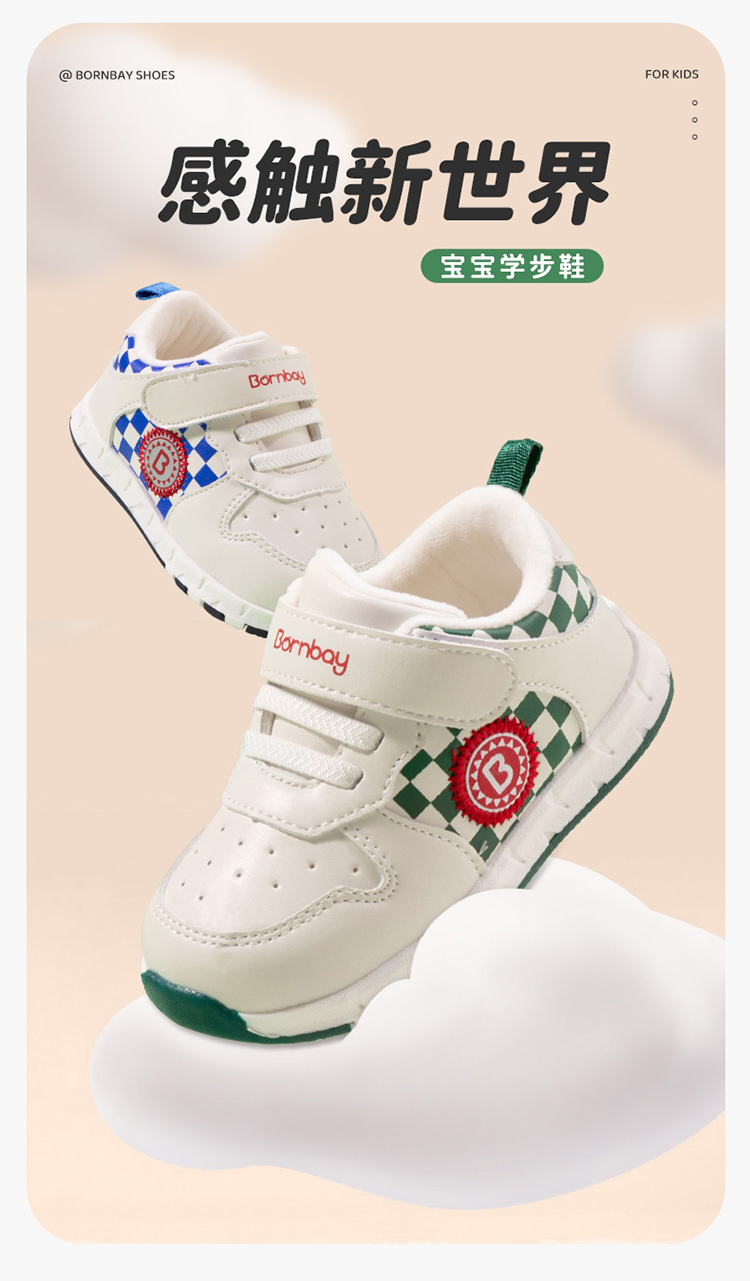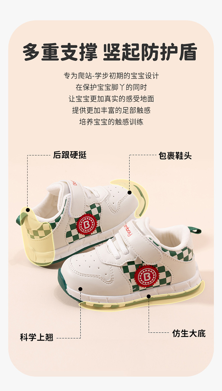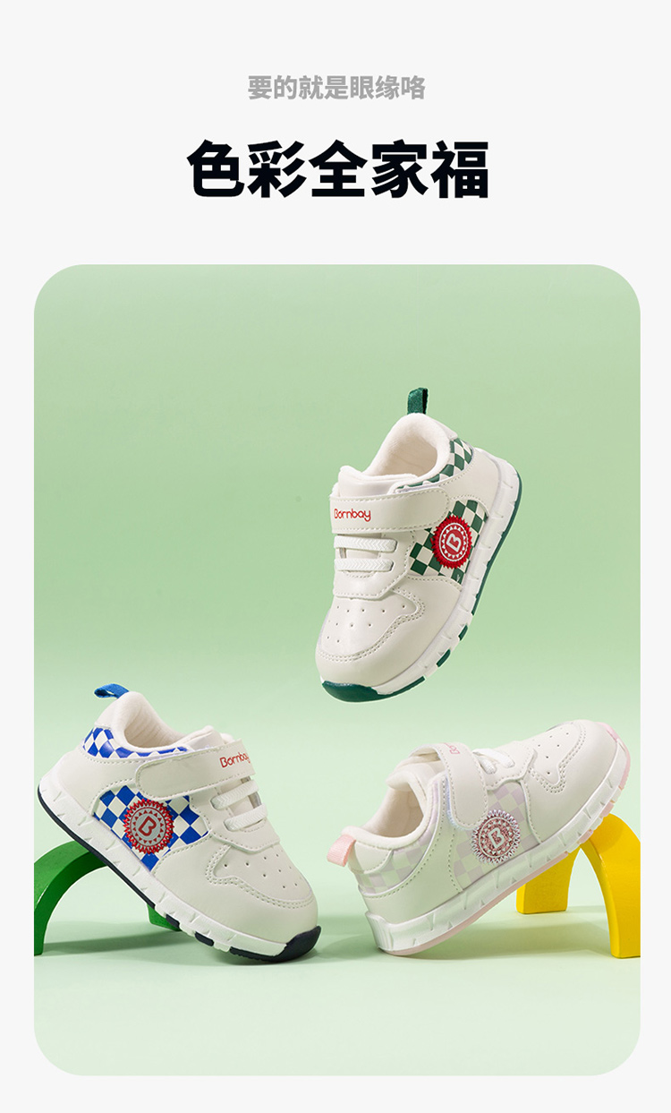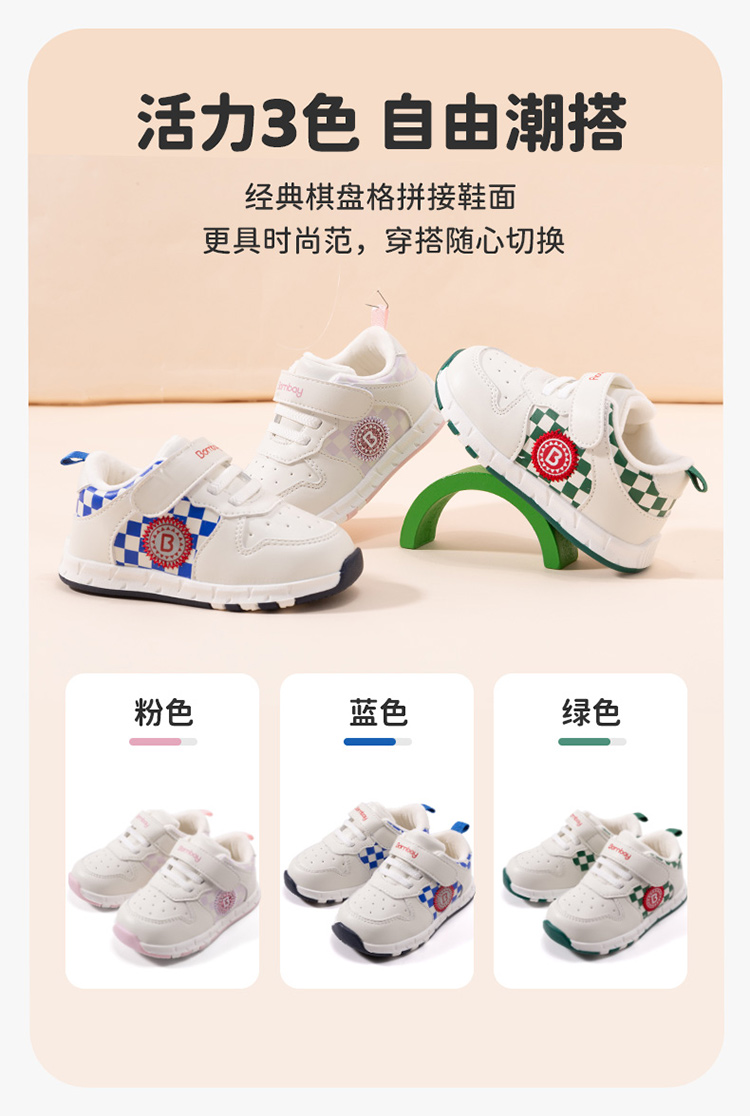 贝贝怡童鞋男女童经典棋盘格拼接宝宝鞋秋冬新款加绒休闲学步鞋234X507
