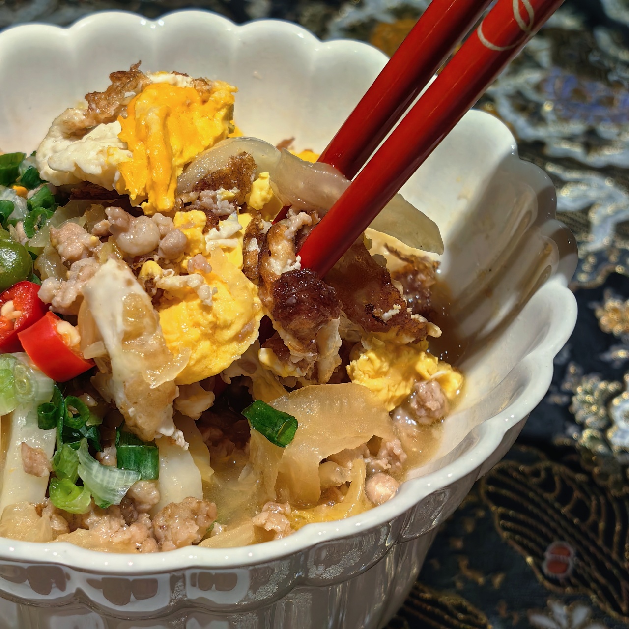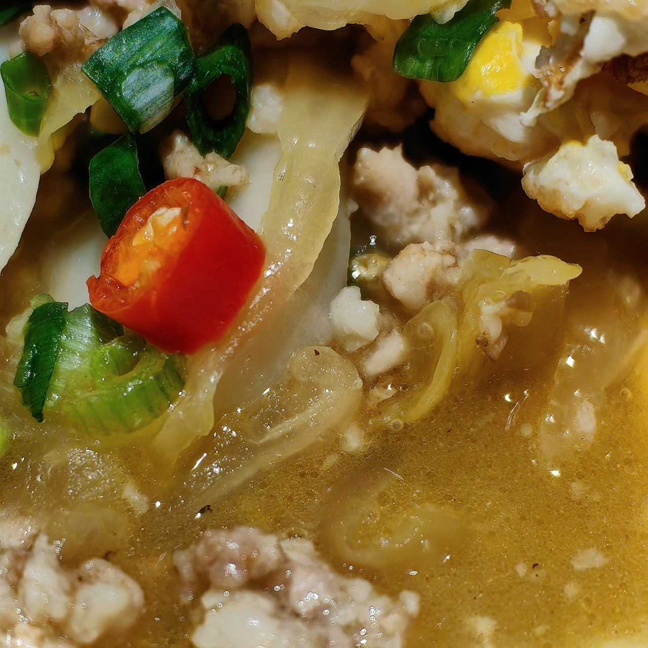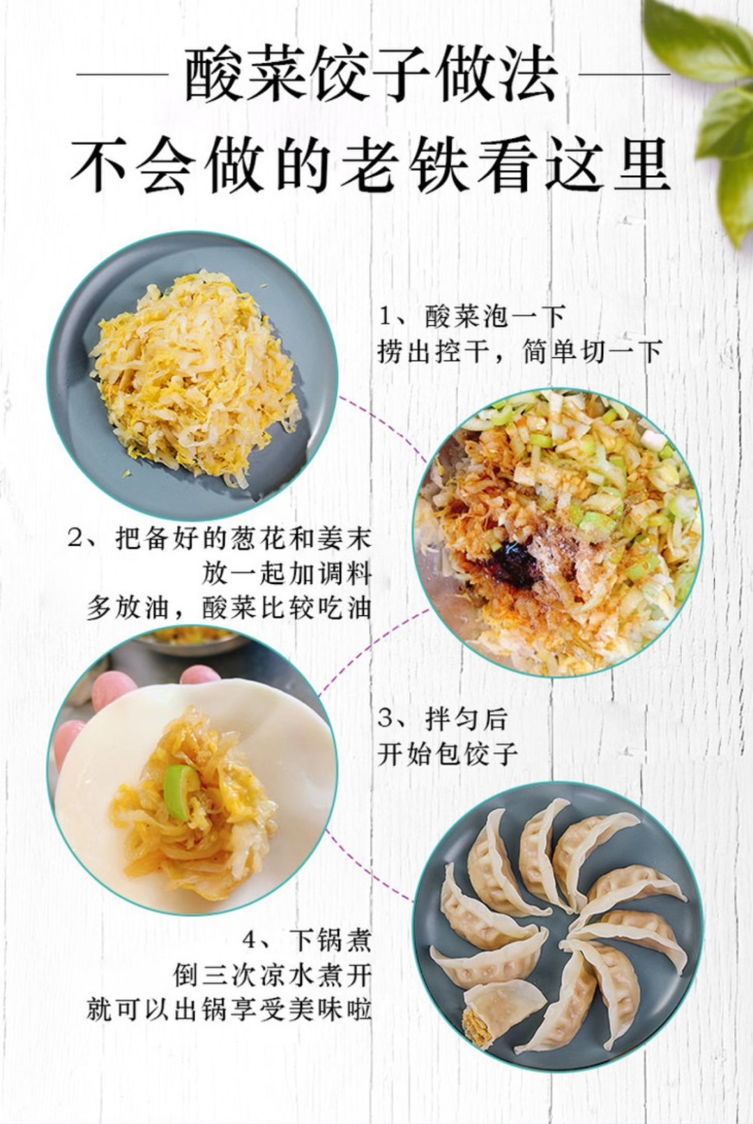 酸菜的吃法就真的太多样了!和五花肉、粉条一起炖炖,就是好吃到停不下嘴的酸菜炖粉条,还可以做做酸菜猪肉饺、杀猪菜、酸菜饼,尤其是煎牛肉、五花肉,还有炖肘子、排骨,一定要配上东北酸菜,解腻又开胃……反正,全凭自己的手艺了!我是做了一碗这辈子吃过最好吃的汤年糕,酸菜、肉沫、荷包蛋、诸暨年糕,最后再撒上点青豆,没怎么调味,就是酸菜自带的清脆爽嫩,一点酸一点咸,但真的鲜啊,太鲜了!