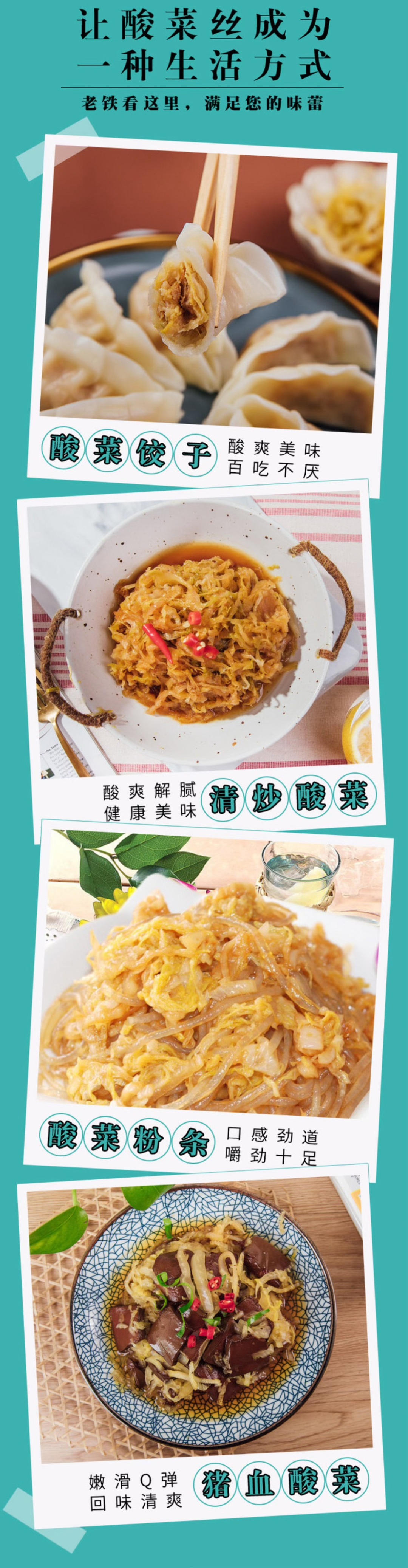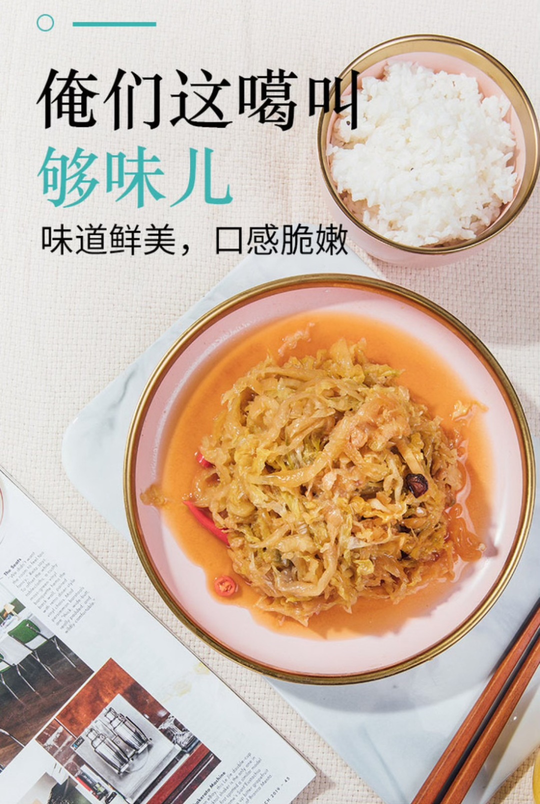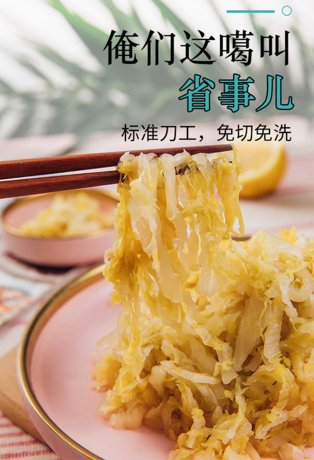 来,上酸菜!作为北方土特产,平平无奇但真的,随便加菜里,都是美味加倍呀!而且阿赐酱的酸菜是非腌制的哦,用的是乳酸菌发酵,酸酸爽爽,配料超干净,还含有丰富的纤维素,以及发酵过程中自然产生的益生菌,对肠道友好!