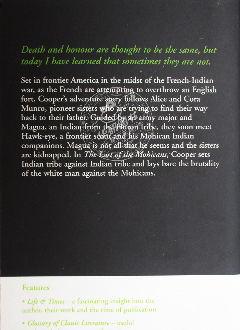 书名:Last of the Mohicans最后一个莫希干人