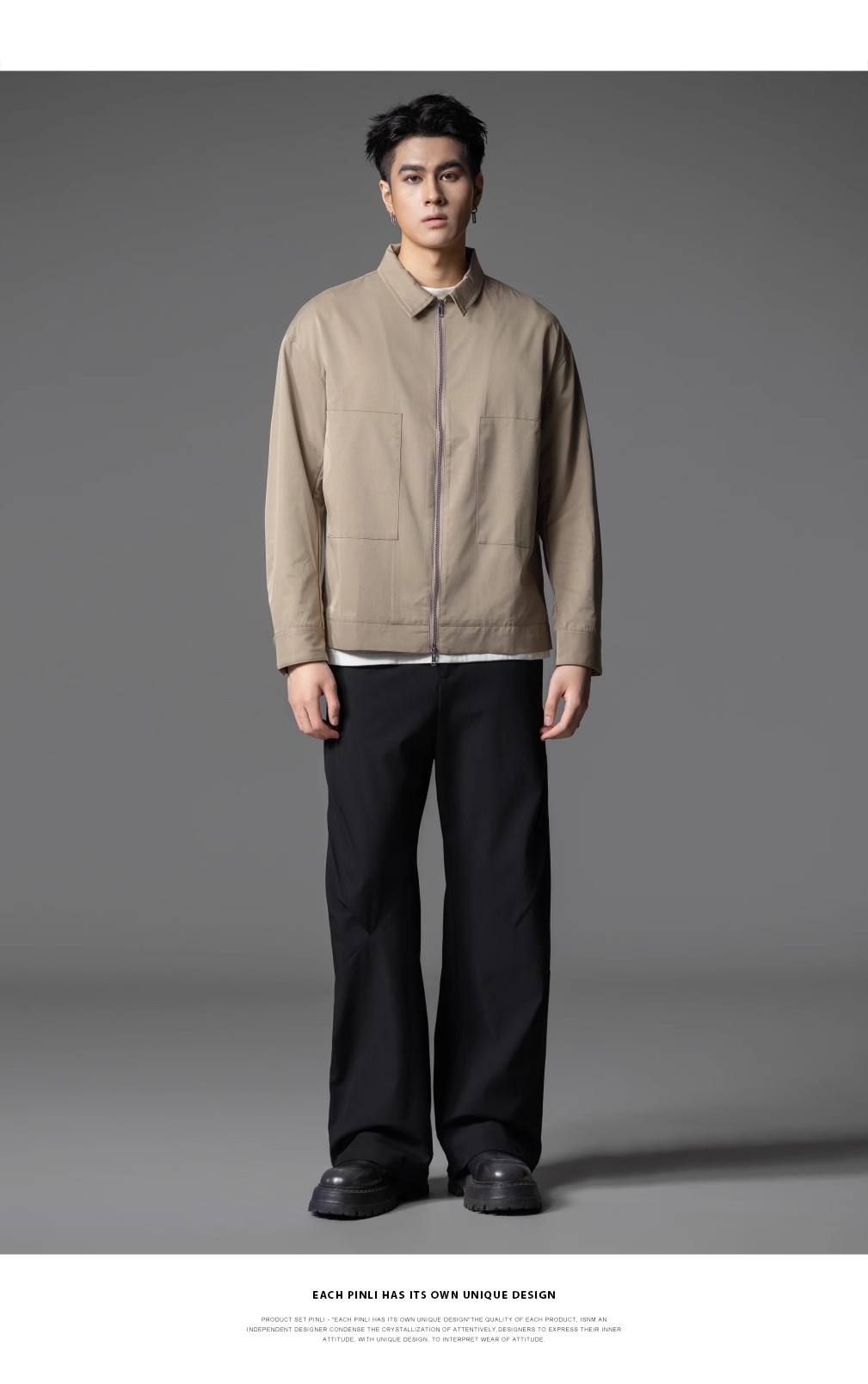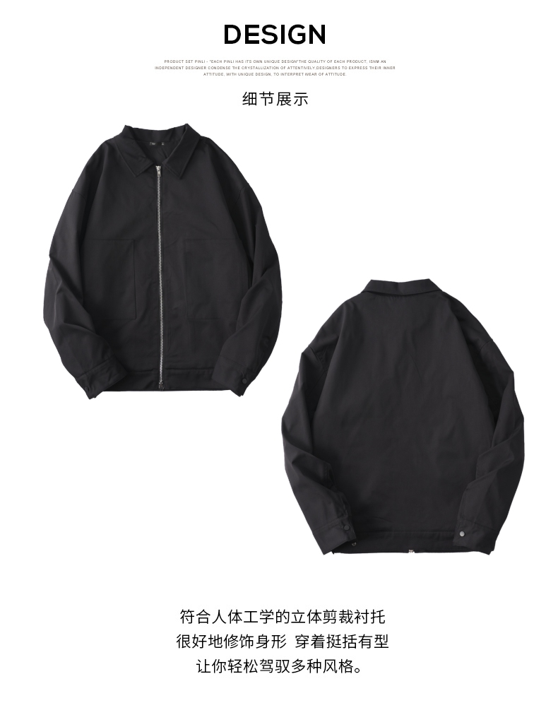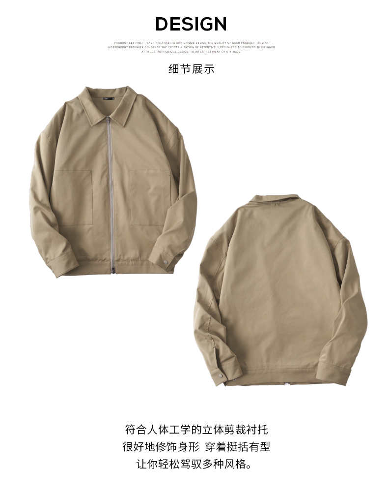 PINLI品立春季新品男士通勤休闲夹克外套干部风宽松茄克上衣GD253104072